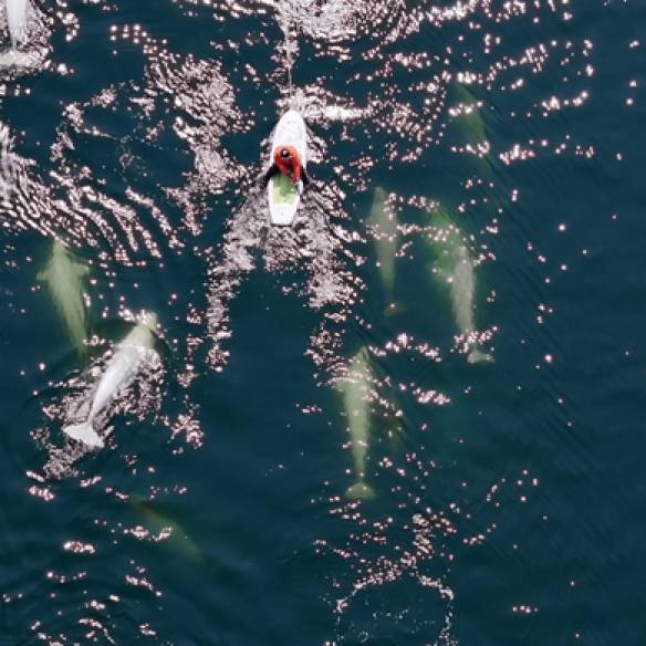 김동식 사실 향고래를 찍기 전부터 바다에 둥둥 떠다니는 비닐봉지들을 여러 번 발견했었다. 보이는 족족 수거하면서도 고래들이 먹잇감으로 착각할 수 있겠다고 생각했는데. 아니나 다를까 향고래를 촬영하는 날에도 버젓이 떠다니고 있었다. 고래들끼리 그 봉지를 먹으려 아웅다웅하는 모습을 찍는 몇 초 동안 수없이 고민했다. 원칙대로라면 개입하지 않는 것이 맞지만, 새끼 고래까지 싸움에 합세하는 것을 보고서는 가만있을 수가 없었다. 비닐봉지가 고래 주변을 살짝 벗어났을 때 재빨리 수거했다. 지금 그 상황이 눈 앞에 펼쳐진대도 같은 선택을 할 것이다.