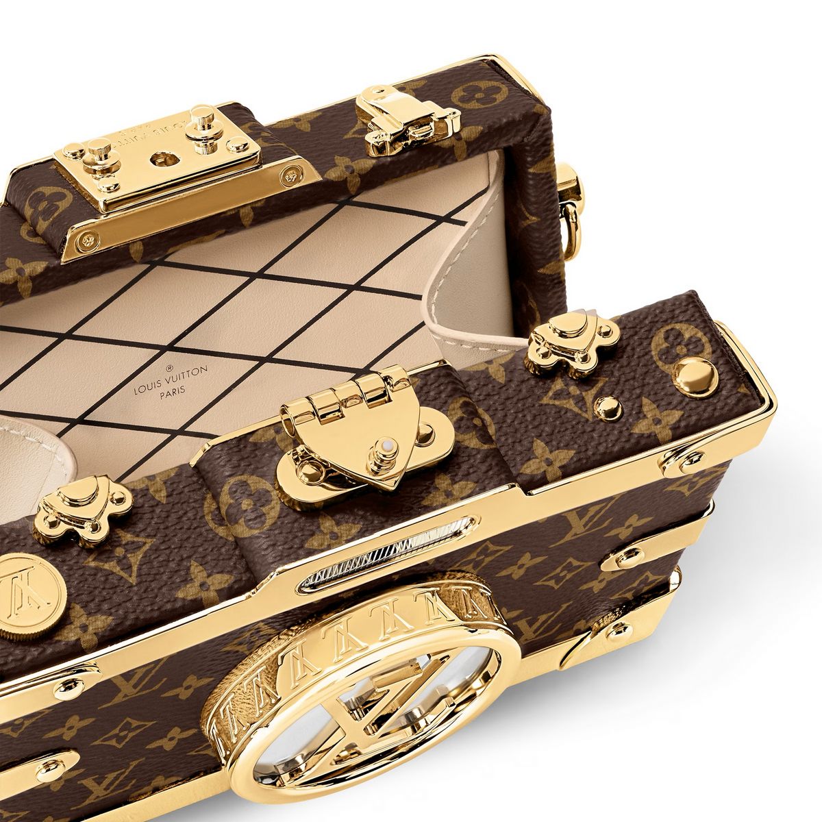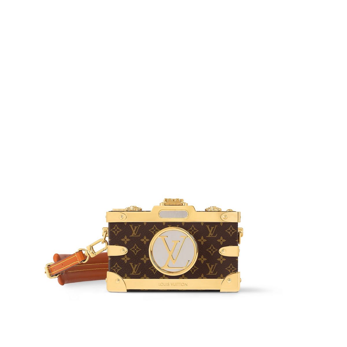 골드 컬러의 LV 서클을 더한 렌즈 캡 모형의 디테일로 빈티지 카메라처럼 보이도록 디자인한 미노디에르 백. 리사는 ‘픽 트렁크'를 활용해 사진을 찍는 듯한 포즈를 취하기도! 사실 ‘픽 트렁크’는 코냑 색상의 송아지 가죽 소재로 만든 케이스가 존재한다. 도톰한 패딩 스트랩을 더해 목에 걸거나 숄더 백, 크로스로 연출 가능하지만 리사는 손에 들어 클러치처럼 연출했다. 들여다볼수록 매력적인 작고 귀여운 디테일들이 가득! 다만 가격은 결코 귀엽지 않다는 게 함정이다.
