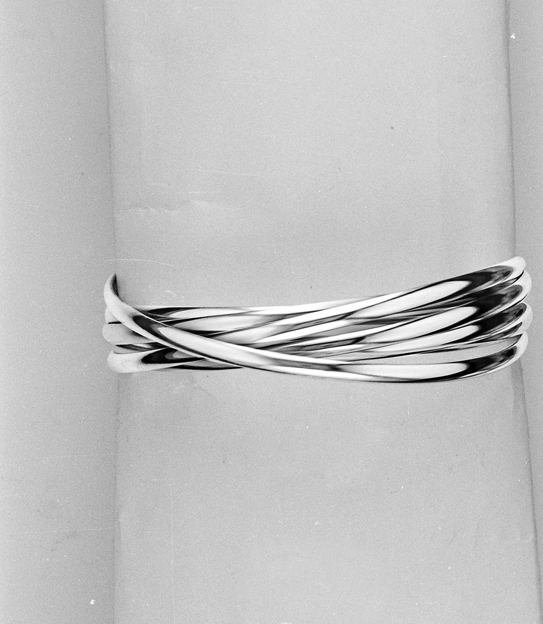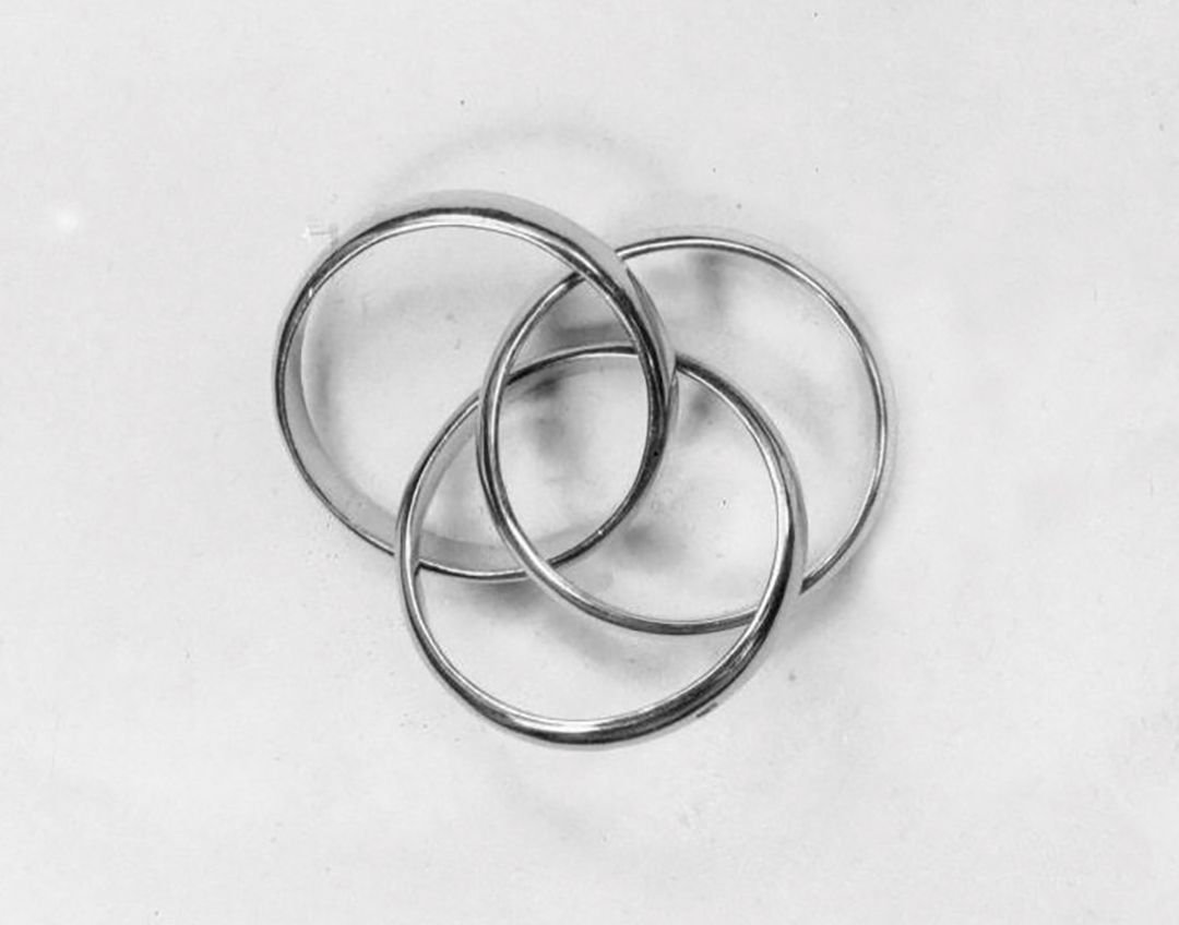Bold 핑크 골드, 옐로 골드, 화이트 골드 세 개 밴드가 얽힌 디자인은 정서적으로나 기술적으로나 마치 수수께끼 같다. 세 개의 밴드 중 어느 것 하나도 다른 두 개의 위에 놓이지 않는다. 각각 또 하나의 밴드 위에 놓이고, 나머지 다른 밴드 위에 놓인다. 어느 것이 가장 위에 있는지, 어느 것이 가장 아래에 있는지 말할 수 없다. 세 개의 오브제가 존재하며 어느 것 하나도 더 크거나 작지 않다.