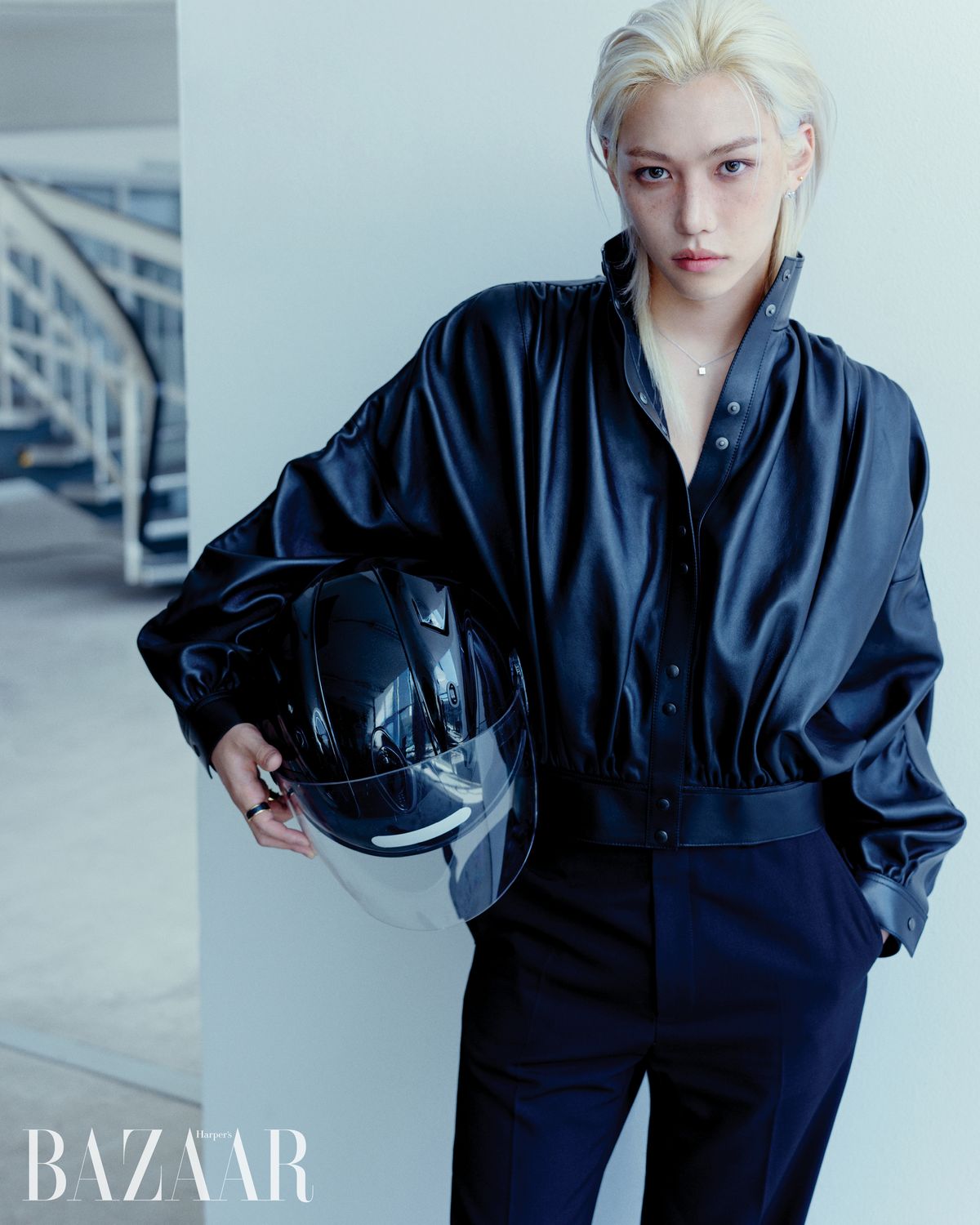 루이 비통(Louis Vuitton)의 글로벌 앰배서더로 2024/25 가을-겨울 여성 컬렉션 참석을 위해 파리를 방문한 필릭스와 <바자> 코리아 4월호 화보, 디지털 영상 촬영을 진행한 것.