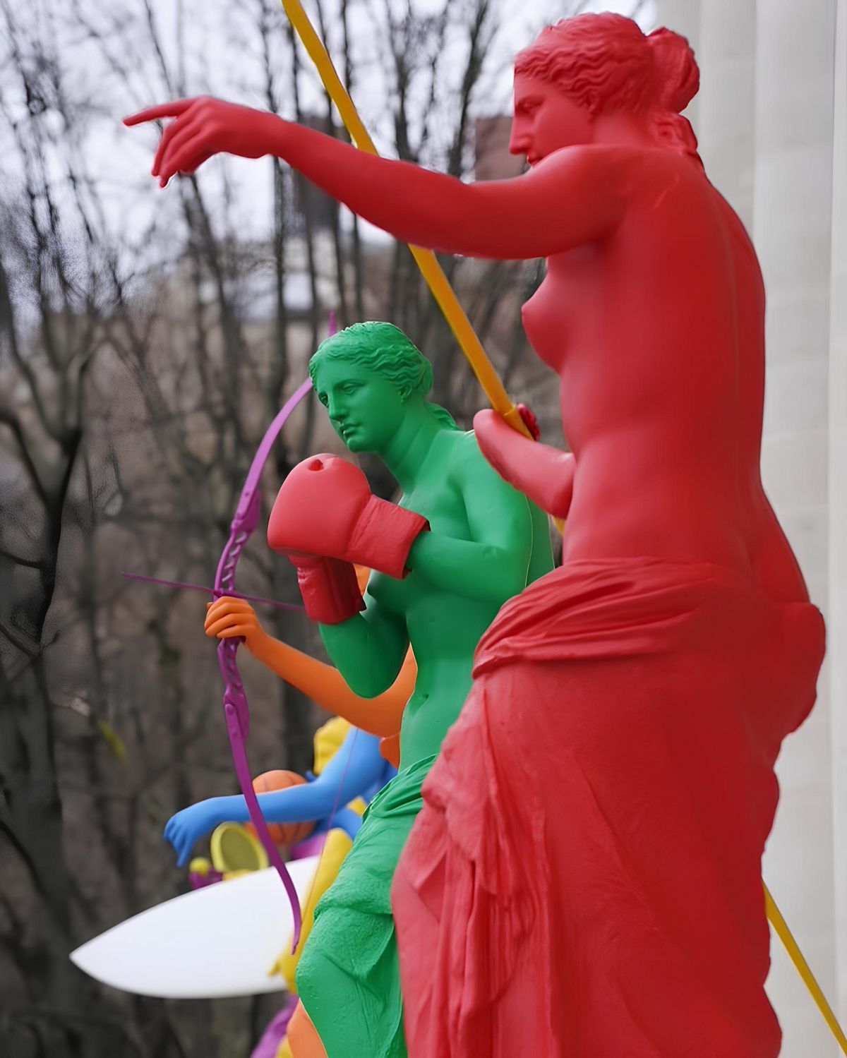 유명 그리스 조각상 중 하나인 '밀로의 비너스(Venus de Milo)’에서 영감을 받아 아크릴 레진으로 제작된 이번 작품의 관전 포인트는 반전 매력과 컬러. 각 종목을 대표하는 물건을 든 채 그에 맞는 포즈를 취한 비너스 상의 낯설고도 색다른 모습이 파리 시민과 관광객의 시선을 사로잡았다. 여기에 평등한 권리와 차별에 맞서 싸우는 것을 상징하는 컬러풀한 무지개색까지. 4월 2일부터 9월 22일까지 전시될 6개의 비너스 상은 오는 7월 14일 올림픽 성화와 바로 그 자리에서 마주할 예정이다.