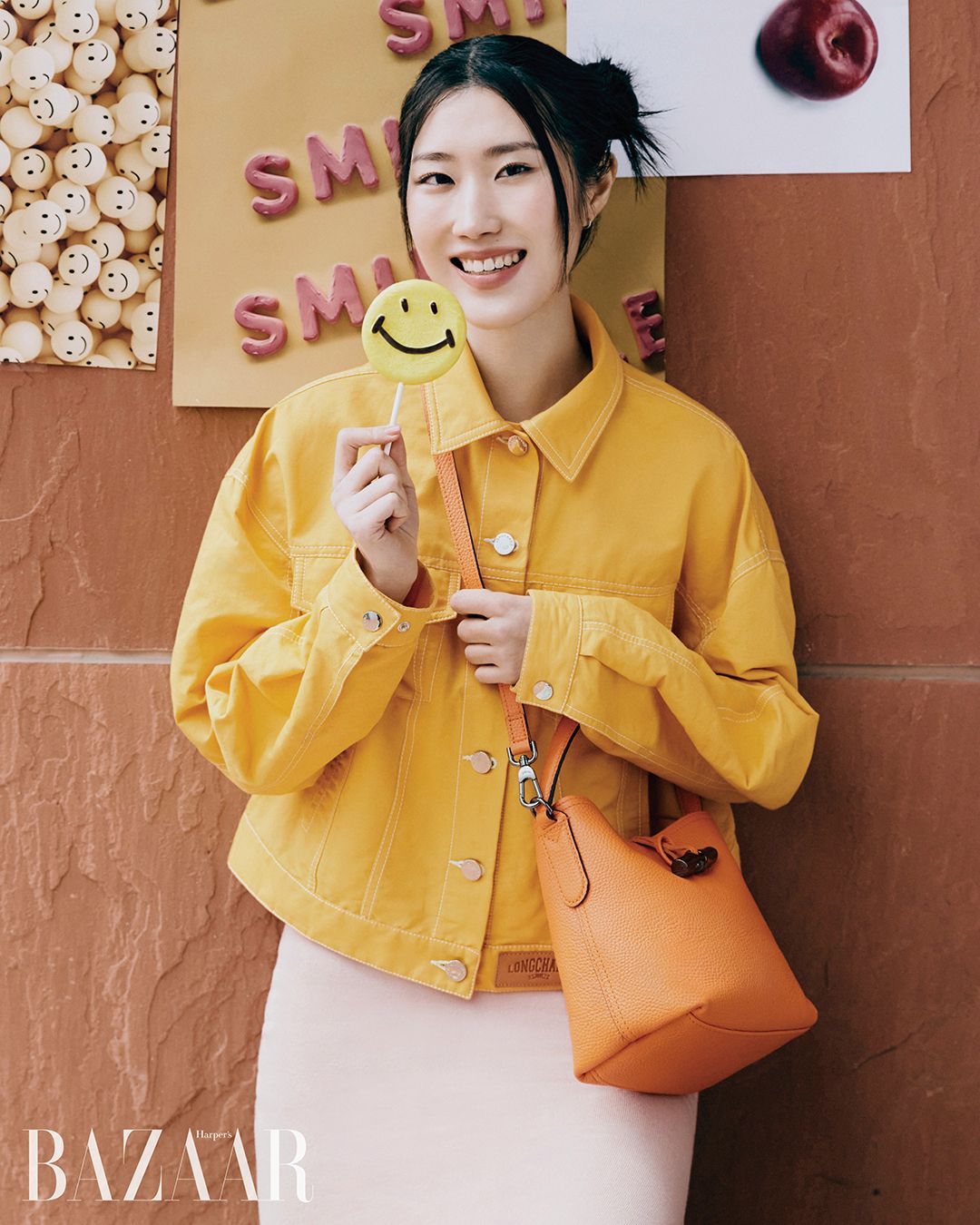 모델로 활동하면서 SNS를 통해 다양한 콘텐츠를 촬영하다 보니 자연스레 제 자신을 표현하기 시작했어요. <바자>와 롱샴이 함께한 ‘마이 유니버스’ 프로젝트에 참여하면서 크리에이터로 한층 더 성장할 수 있는 시간이 되었습니다. 촬영 끝무렵, 코끝이 빨개질 만큼 추운 날씨였지만 훌륭하신 분들과 함께할 수 있어서 힘이 들기보다는 행복했습니다. - 유진