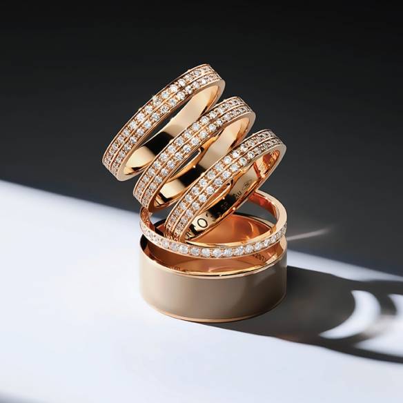 여러 개 레이어링 해 착용할 수 있는 앙티페 링과 뱅글.