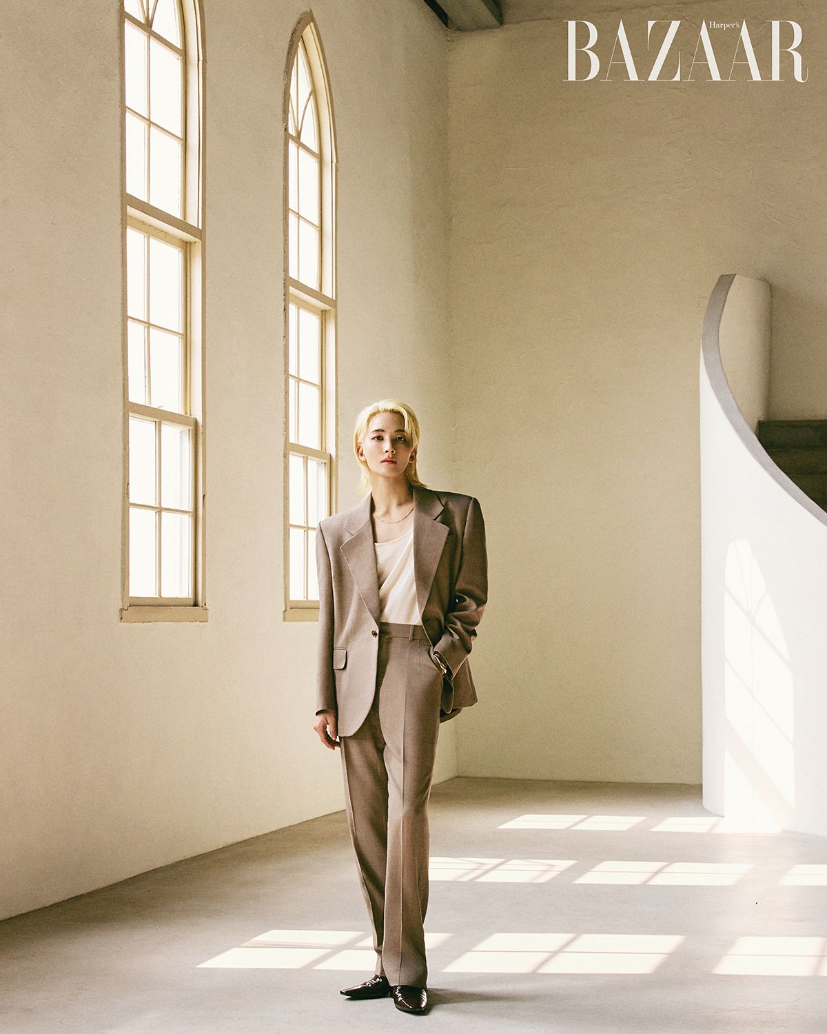 셔츠는 Auralee. 팬츠는 Ferragamo. 이너 톱은 스타일리스트 소장품.