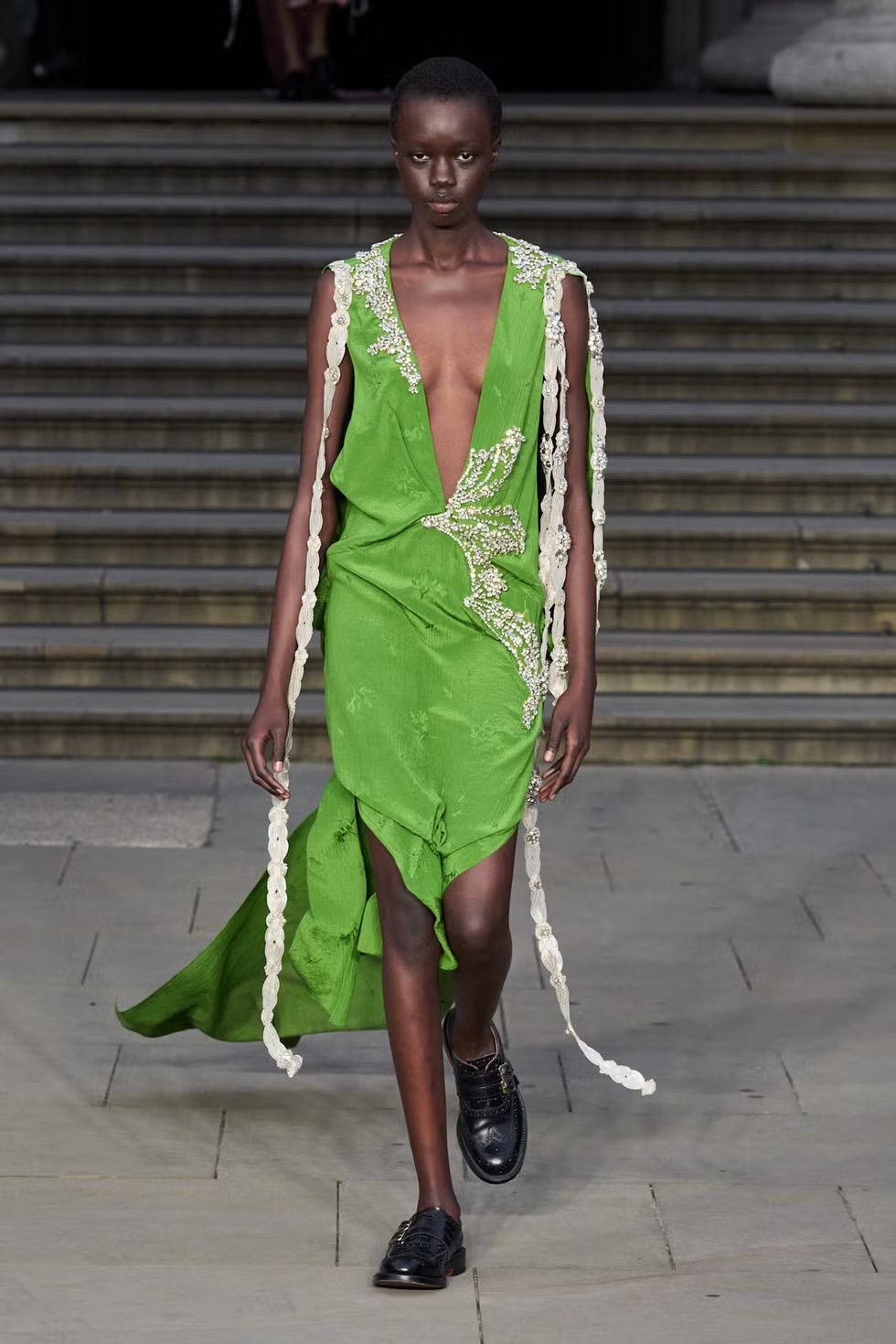 이번 시즌 16알링턴은 한층 밝은 분위기를 선보였다. 2021년 하우스 공동 창립자이자 파트너였던 페데리카 카베나티를 잃은 후, 디자이너 마르코 카팔도는 인간 본성의 어두운 면을 탐구해왔다. 하지만 이번 컬렉션에서는 그 그림자에서 벗어나고자 했다. 옐로, 그린, 오렌지 컬러를 중심으로 여름의 편안함을 반영한 셔츠, 브라 톱, 여유로운 실루엣들이 돋보인 이번 컬렉션을 “갑자기 태양을 마주하는 분위기였다.”고 표현하기도. 브랜드 본래의 재미있고 섹시한 정신으로 돌아가고자 했다는 디자이너의 의도가 돋보이는 포인트.