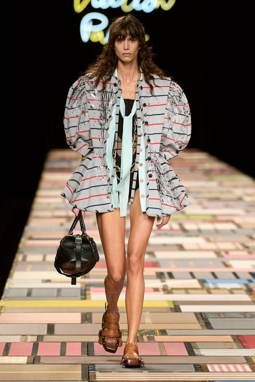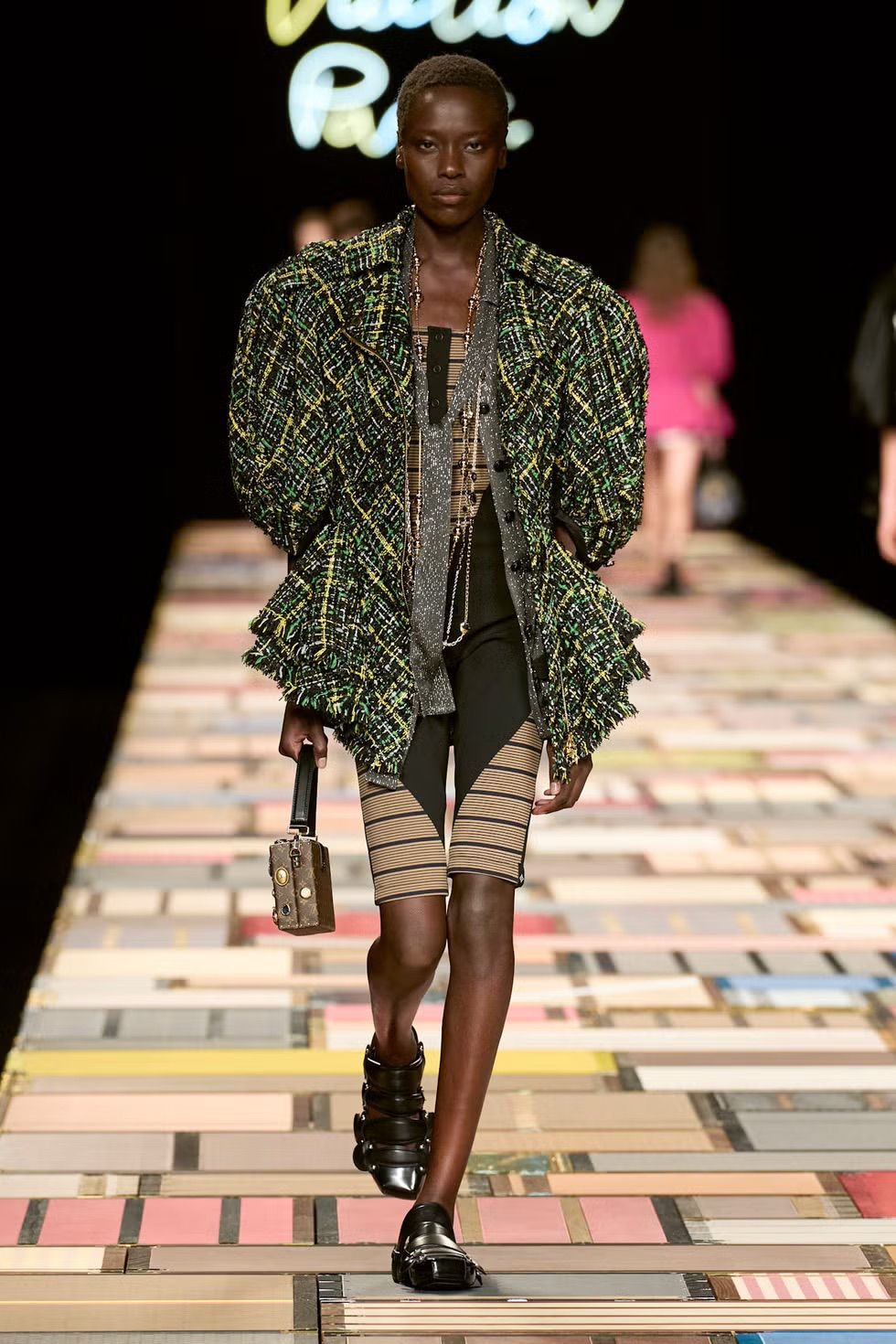 이번 시즌 미우치아 프라다와 라프 시몬스는 소셜 미디어 알고리즘에 대해 고민하며, 인간의 개성과 예측 불가능성을 강조하는 컬렉션을 선보였다. 런웨이에 등장한 모든 아이템은 매력적인 스타일링으로 독특하게 다가왔다. "각자가 슈퍼 히어로가 되는 것이 중요하다. 알고리즘이 우리에게 무엇을 입어야 할지 알려주는 것을 따르기보다는 개인의 개성을 표현하는 것이 중요하다."는 이야기를 쇼가 끝난 백스테이지에서 전하기도.
