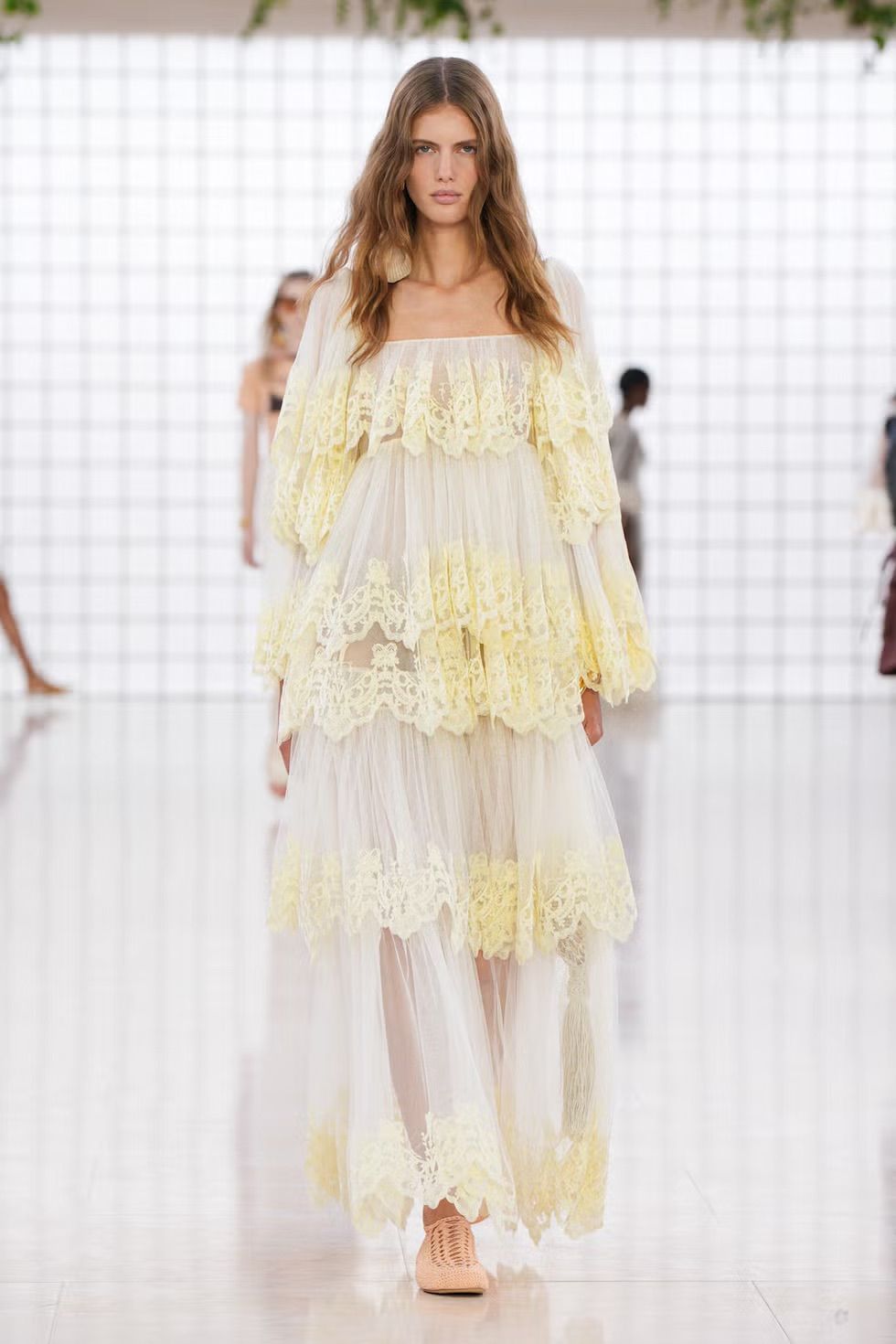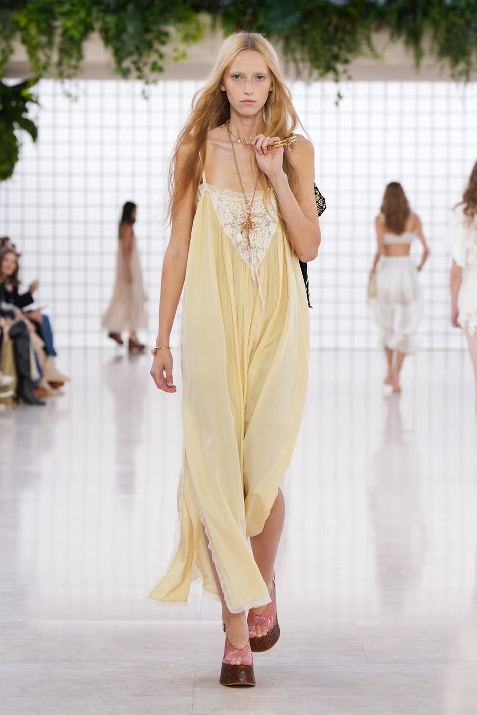 셰메나 카말리는 여름에 대한 그리움과 여름에만 느낄 수 있는 감정을 담고 싶었다며 이번 컬렉션의 테마를 설명했다. 큰 호평을 받은 첫 컬렉션 이후, 이번 시즌 카밀리는 70년대 실루엣에 풍성한 레이스와 같은 여성스러운 디테일을 통해 끌로에의 아이코닉한 요소들을 부활시키는 작업들을 선보였다.