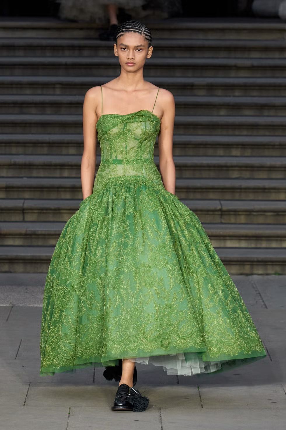 런던 패션위크의 하이라이트라 할 수 있는 시몬 로샤는 지난 세 개 시즌을 넘어 새로운 시대로 접어들었음을 증명했다. 카네이션을 모티프로 다양한 아이템에 장식했고, 시스루 가운이나 데님, 튀튀 스커트로 풀어내기도. 크록스와 함께한 세 번째 컬렉션도 선보였다.
