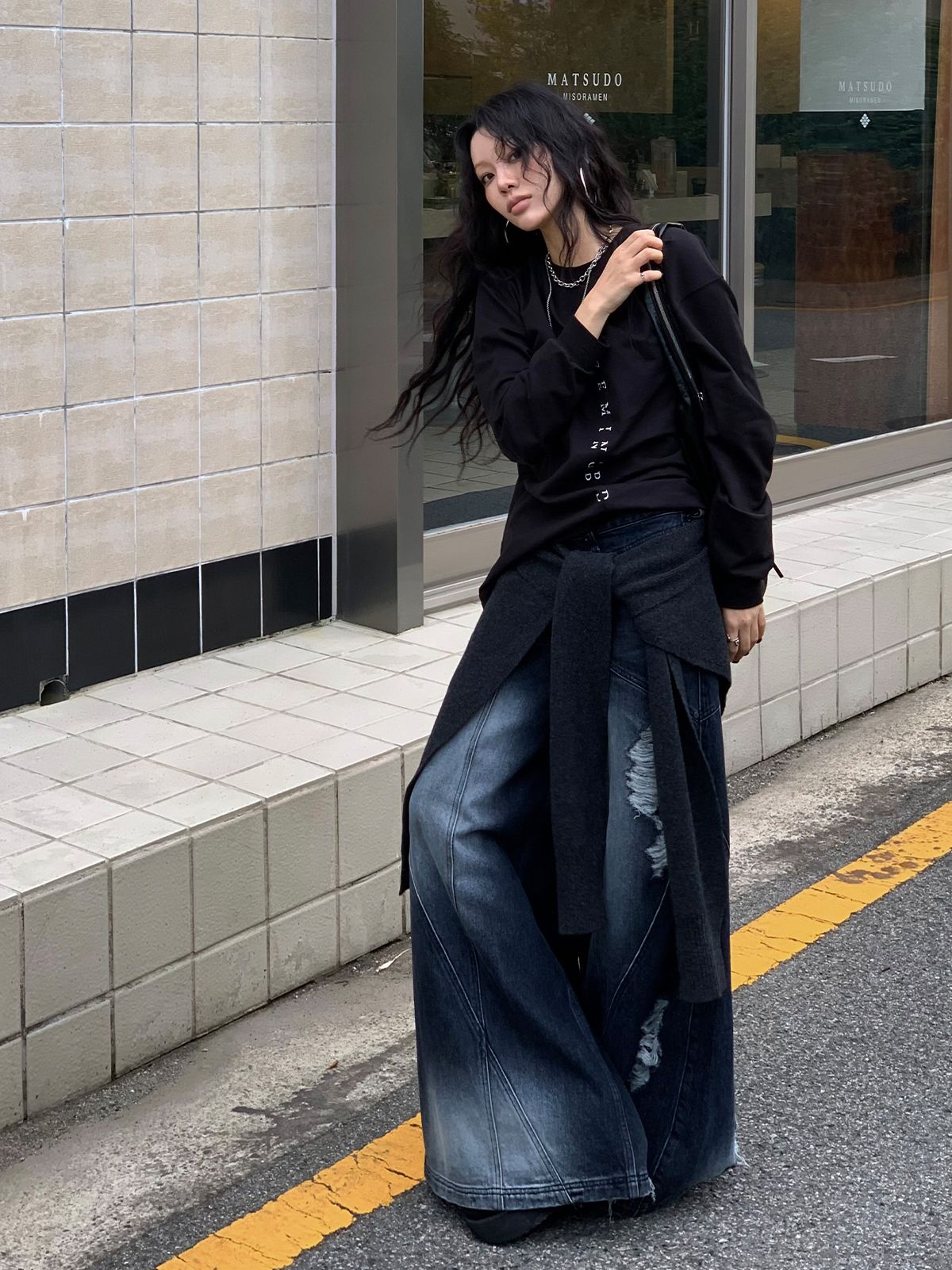 레이어드된 제품은 사진으로 그 매력을 모두 전하기 어려워요. 특히 와이드한 팬츠나 랩 팬츠는 직접 입고 걸어야 진정한 매력과 멋이 보이죠. 바람이 불고, 걸음으로 다리가 교차할 때 실루엣이 더욱 돋보이거든요. 그래서인지 혹자는 실제로 제가 착용한 영상을 따로 찾아본다고 하더라고요.