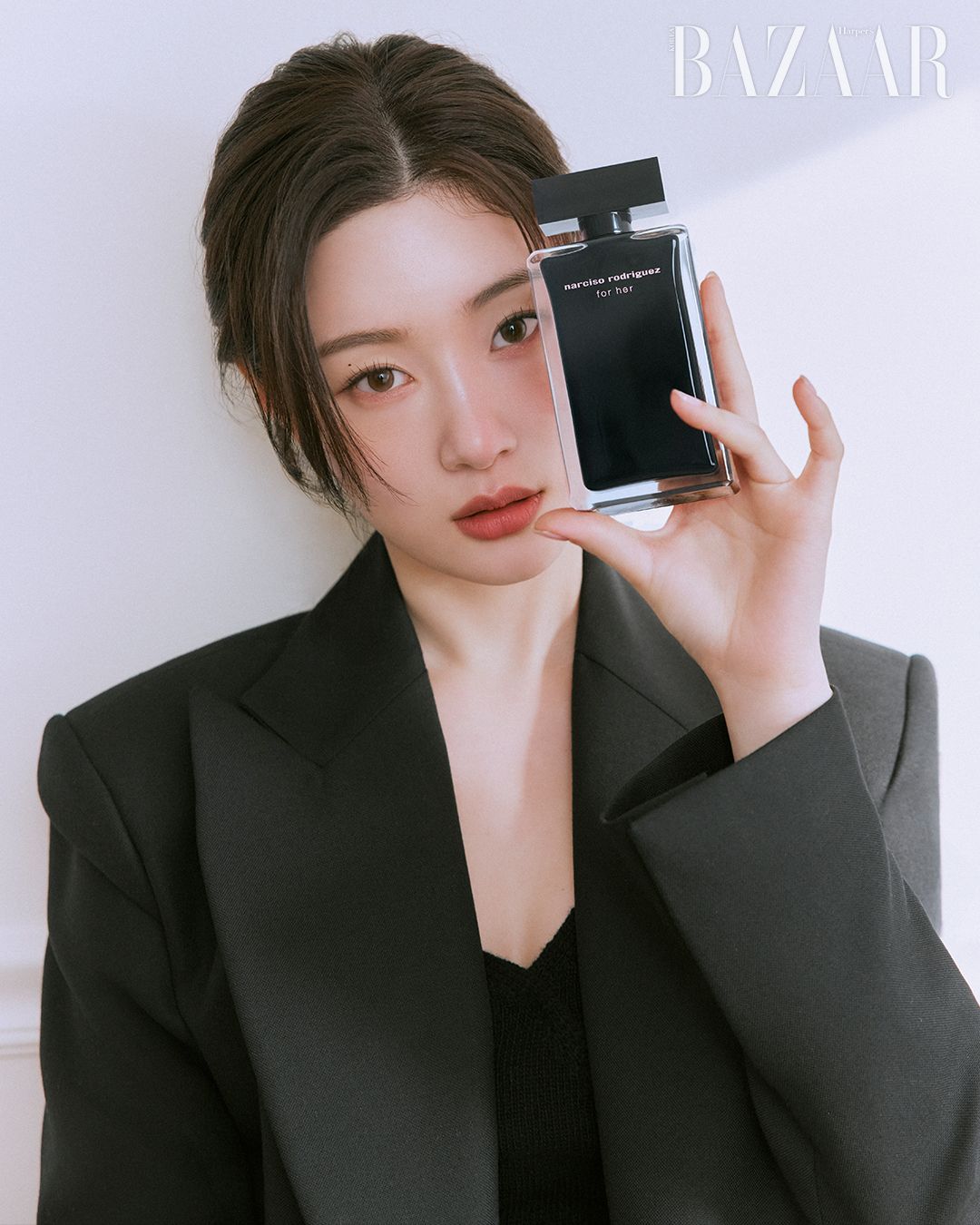 또한 나르시소 로드리게즈의 우아하고 고급스러운 향을 표현할 때는 오간자 드레스와 클래식한 슈트를 선택해 상반된 매력을 보여줬다. 빠져들 것 같은 그녀의 시선은 매혹적인 나르시소 로드리게즈의 향수 그 자체였다.