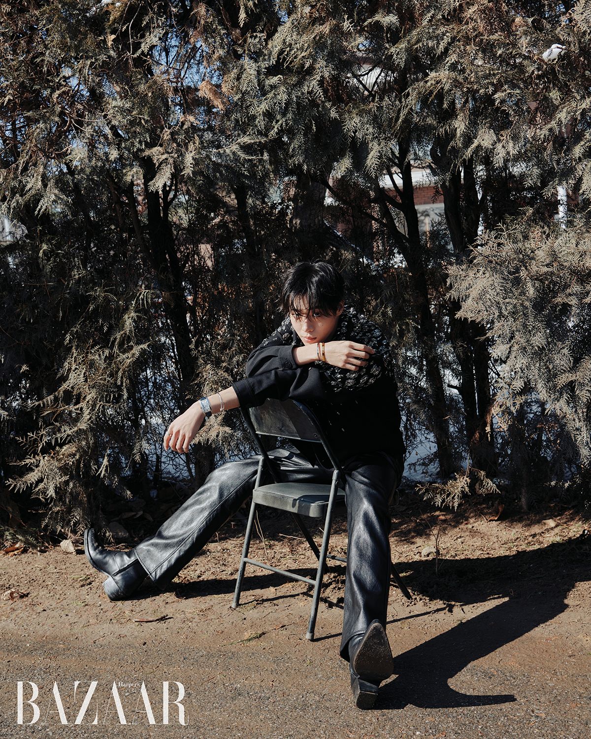 로퍼는 Ernest W. Baker by 10 Corso Como Seoul. 레더 재킷, 셔츠, 팬츠, 타이는 모두 스타일리스트 소장품.