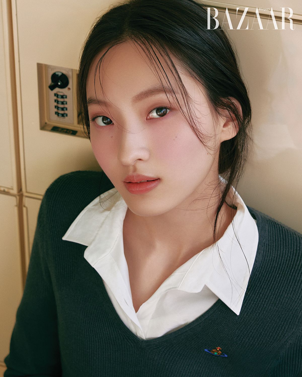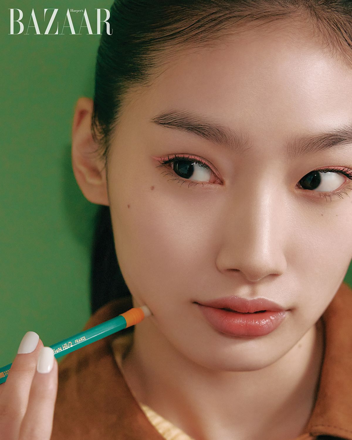 눈 밑을 붉게 물들여 소녀미를 강조했다. 다크서클을 커버하지 않은 채 색을 더하면 한층 신비롭다. 블러셔는 눈 밑에서 시작해 시옷(ㅅ) 자 형태로 터치한다. 크림 블러셔를 사용하면 피부에서 자연스럽게 스며 나오는 혈색을 표현할 수 있다.