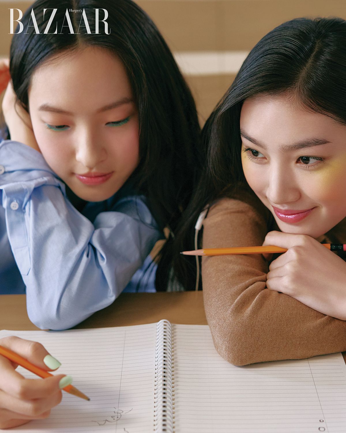 유엔씬이 입은 카디건은 Polo Ralph Lauren. 박하은이 입은 셔츠는 스타일리스트 소장품.