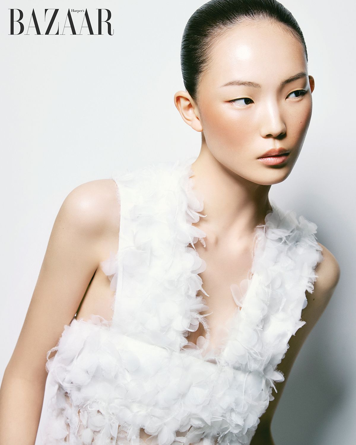 글리터와 시머를 활용한 광채 베이스는 이번 시즌 꼭 ‘하이라이트’ 해야 할 트렌드. 아이시한 실버, 오펄 펄을 눈 밑, 눈썹 뼈 아래, T존에 발라 입체감을 더했다. “파운데이션 위에 한 톤 밝은 컨실러를 사용한 다음 하이라이터를 올리면 극대화된 효과를 연출할 수 있어요.” 이숙경은 아멜리 ‘아스트랄라이트 네온라이터’ 433 네온 오키드와 ‘디올 포에버 글로우 루미나이저’ 06 오팔 시퀸을 함께 사용했다.