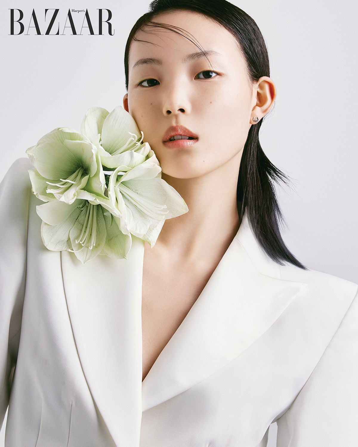 재킷은 Kelly Shin. 귀고리는 Golden Dew.