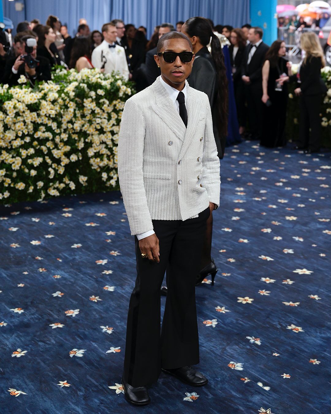 루이 비통의 남성복 크리에이티브 디렉터이자, 패션 아이콘인 퍼렐 윌리엄스는 수 많은 스타들의 커스텀 의상을 직접 디자인하는 한편 자신의 의상 역시 부족함이 없도록 준비했다. 얼핏 보면 심플해 보이는 그의 수트는 두 가지 크기의 진주로 수작업 해서 제작했다. 총 15,000개의 진주가 사용된 이 작품은 루이 비통 장인들이 400 시간에 거쳐 제작한 것으로 가공할만한 디테일에 감탄하게 된다. 20세기 댄디즘의 상징인 핀 스트라이프 수트에서 영감을 받아 제작한 이 수트는 총 400 시간에 걸쳐 제작되었으며, 단추 역시 진주로 제작해 극도로 정제된 우아함을 강조했다.