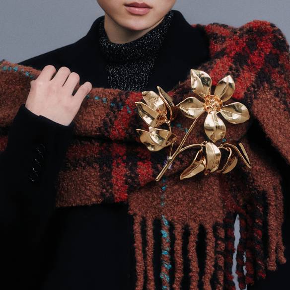 특히 실크, 오간자, 조젯 소재가 여러 겹 레어어드된 아이보리 컬러의 셔츠 칼라는 블랙 수트 위에서 더욱 풍성한 볼륨감으로 눈길을 사로잡았다. 여기에 블랙 레더 소재의 헤론 옥스퍼드 슈즈와 메탈 T-바 오벌 선글라스로 특유의 감각적인 무드를 드러냈다.