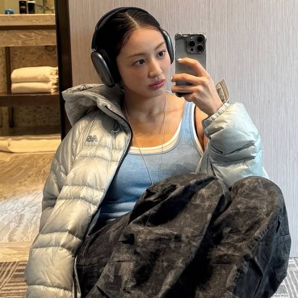 은은한 스트라이프 패턴과 레이스 디테일이 어우러져, 단조로울 수 있는 화이트 룩에 깊이를 더했다. 여기에 가볍게 걸친 시스루 셔츠는 자연스러운 무드와 함께 스타일링에 여유로움을 주기도. 또한 화이트 룩을 더욱 돋보이게 만드는 건 주얼리 선택! 얇은 체인의 실버 네크리스와 포인트가 되는 민트빛 팬던트를 레이어링하여 전체적인 룩에 고급스러운 포인트를 선사했다. 한소희의 맑은 피부톤과 조화를 이루며 그녀만의 독특한 분위기를 극대화되기도!