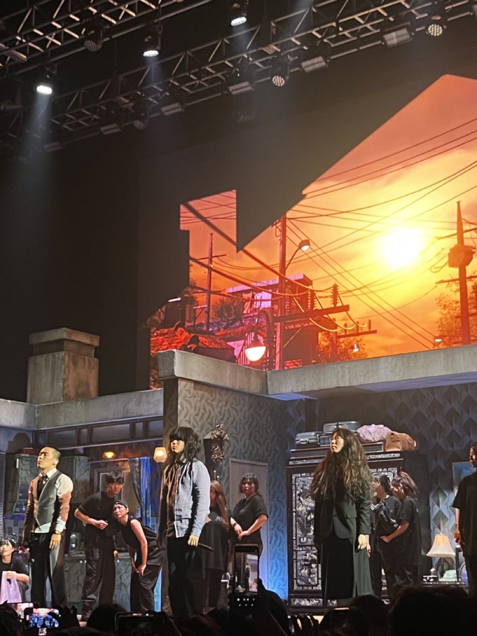 특히 두 번째 시퀀스 ‘진흙 속에 핀 꽃’에서는 배우들이 자리를 비운 사이, 스턴트들이 메인 신을 촬영하며 벌어지는 소동이 관객의 웃음을 자아낸다. 시트콤과 다큐멘터리 사이를 오가는 ‘가짜 영화’의 세트를 무대 위에 고스란히 올린 채, 영상과 현실은 끊임없이 교차한다. 이때 관객은 단순히 무대를 ‘보는’ 존재가 아니라, 경계 속으로 침투하며, 하나의 장면 속 ‘되기(becoming)’의 일부가 된다. 바밍타이거는 팬덤과 관람자라는 고정된 역할 구조를 해체하고, 관객의 위치를 능동적인 감각의 주체로 재배치한다. 무대에서 춤을 추는 자와 연기하는 자, 무대 위와 영상 속 사이의 경계가 흐려지는 찰나, 관객은 단순히 공연을 ‘관람’하는 것이 아니라 서사 속에 온전히 흡수되고 ‘참여’하게 되는 순간을 마주한다.