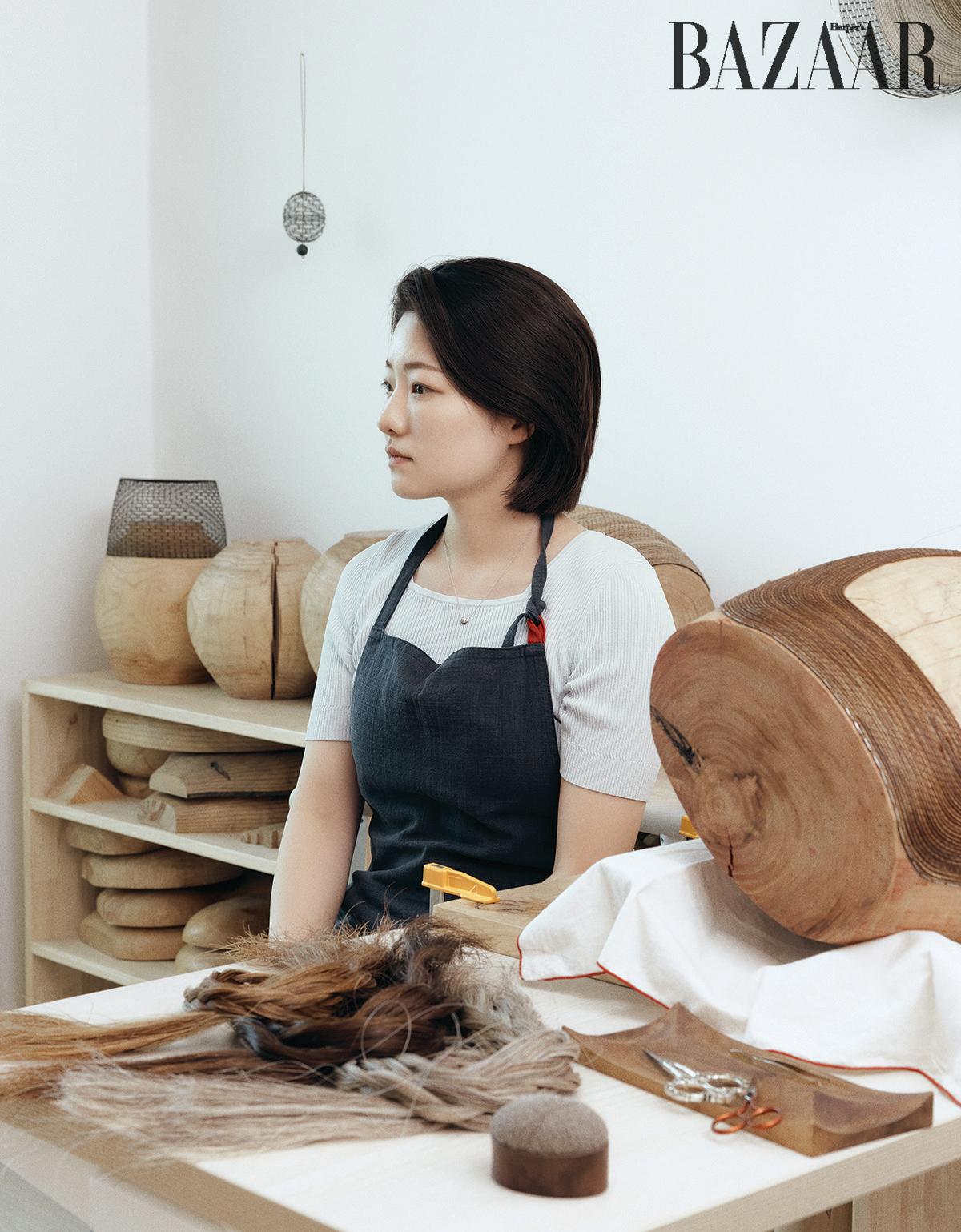 집 한편에 작업실을 만들고 매일 일정 시간 작업한다. 7년 전 말총 공예를 시작했던 순간부터 공예를 일상처럼 이어오고 있다.