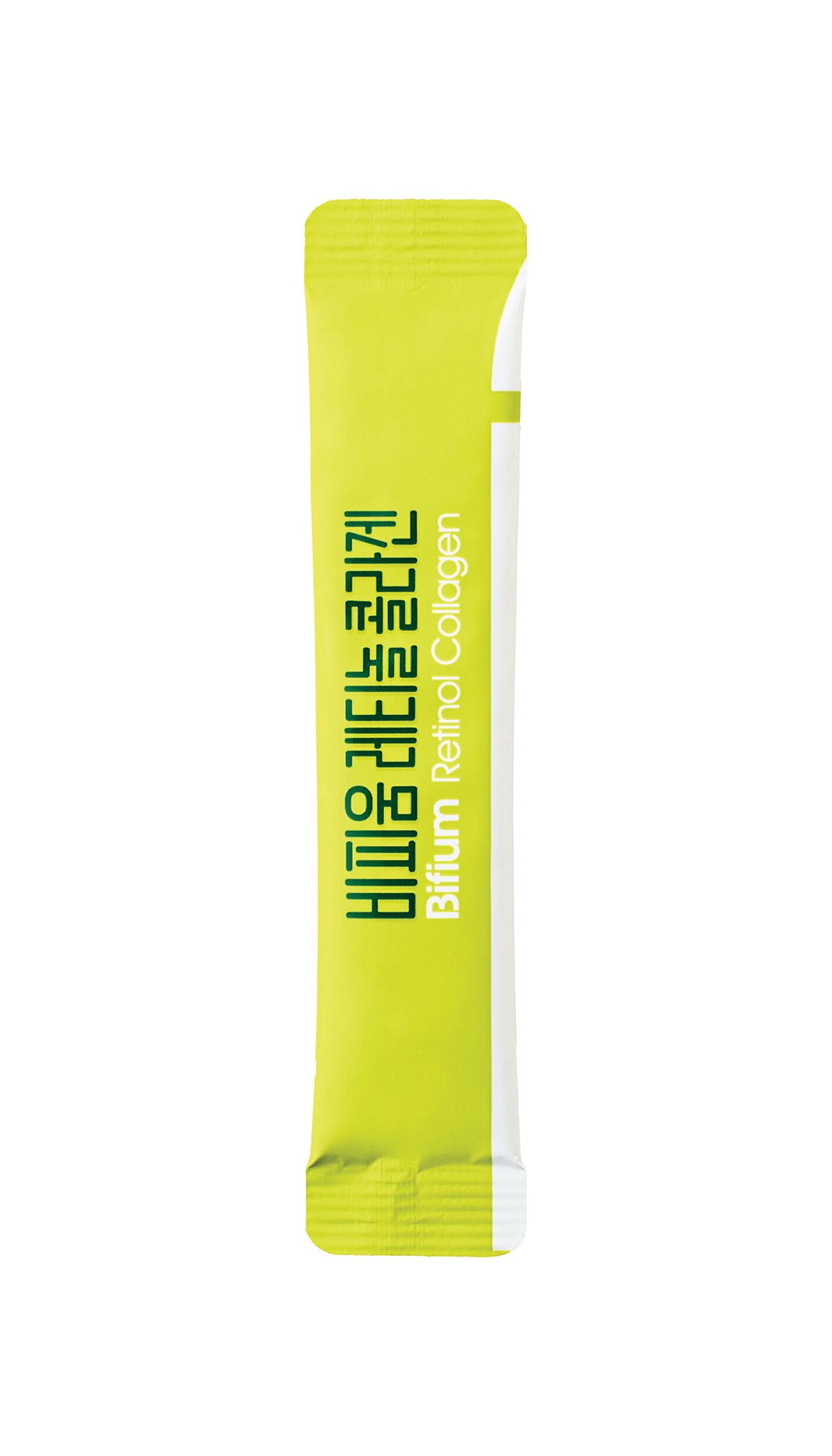 Bifium 레티놀 콜라겐 히알루론산, 콜라겐, 엘라스틴을 함께 처방해 피부 탄력을 집중 케어한다. 상큼한 청귤 라임 맛. 28개입 2만8천원.