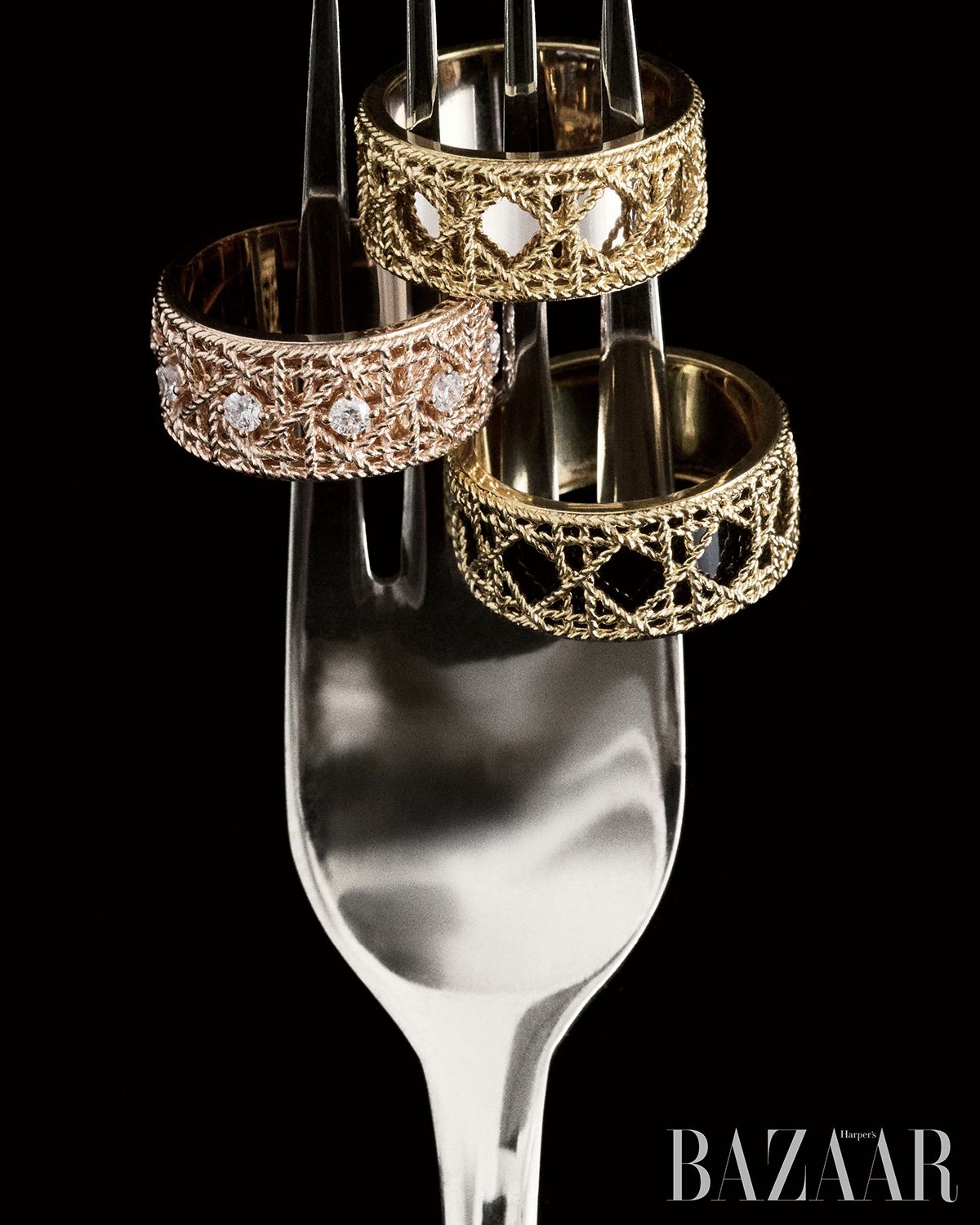 아이코닉한 까나쥬 모티프로 완성한 ‘마이 디올’ 링은 모두 Dior Joaillerie. 포크는 Cosi Tabellini.