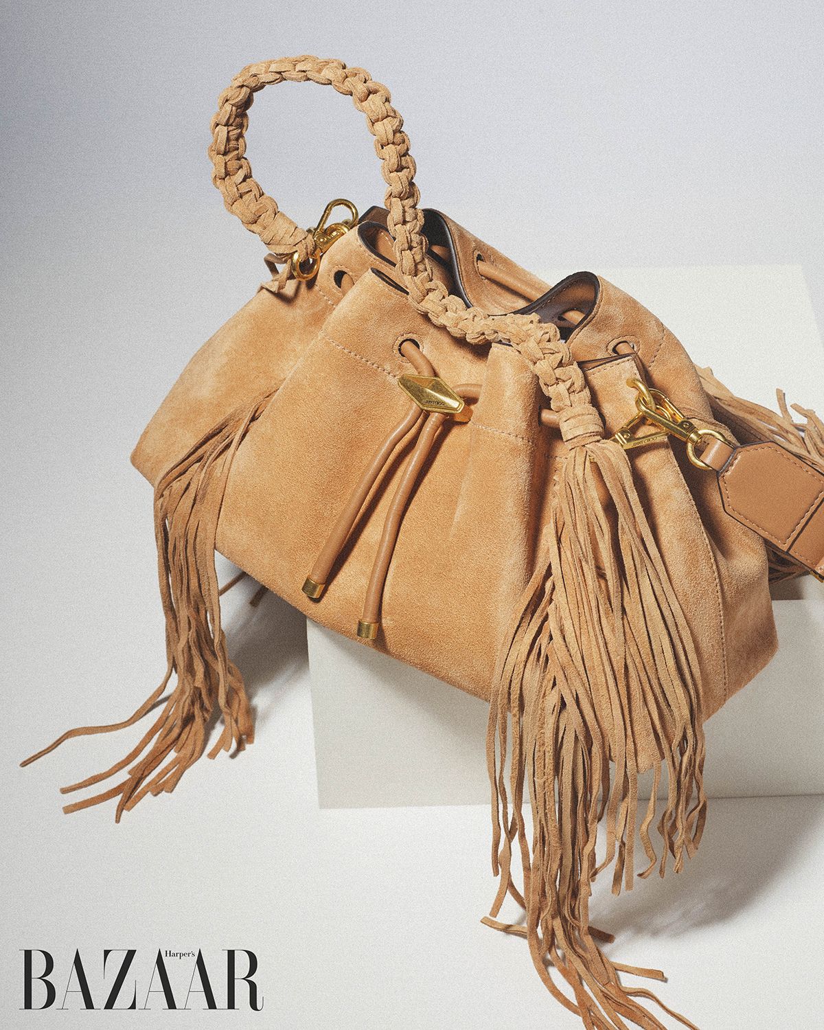 프린지와 매듭 디자인 톱 핸들이 돋보이는 백은 2백93만원 Jimmy Choo.