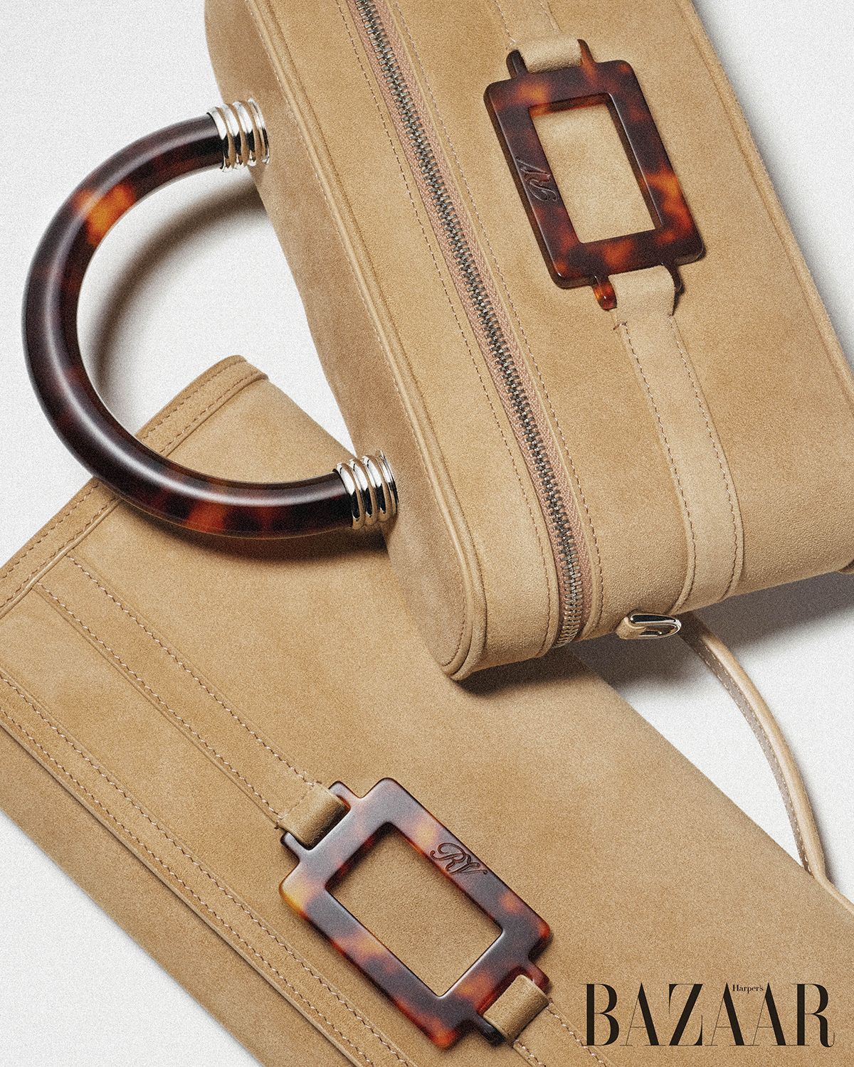 레진 소재 버클의 톱 핸들 백, 클러치는 가격 미정 Roger Vivier.