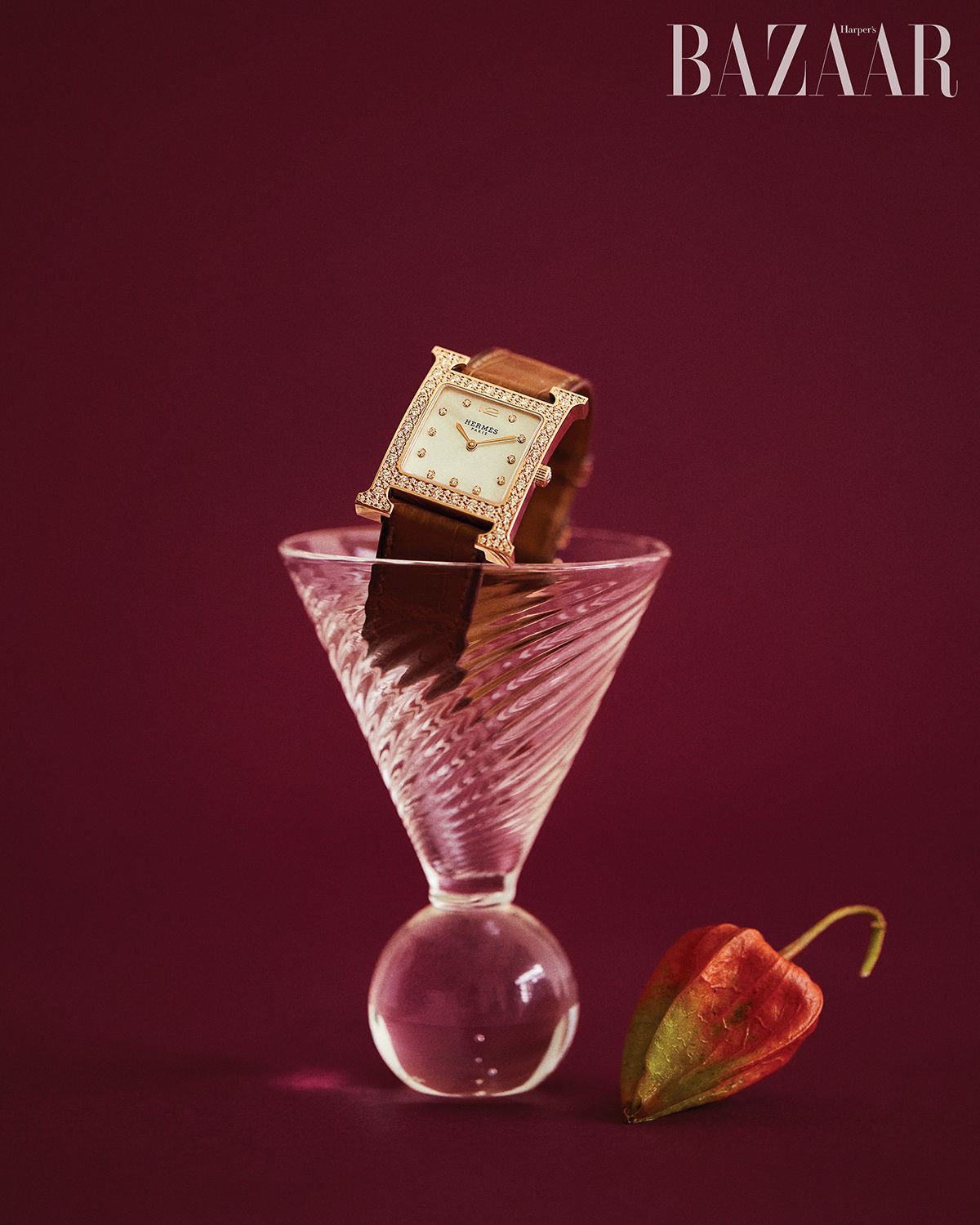 화이트 머더오브펄 다이얼을 장착한 ‘H아워’ 워치는 Hermès Watch.