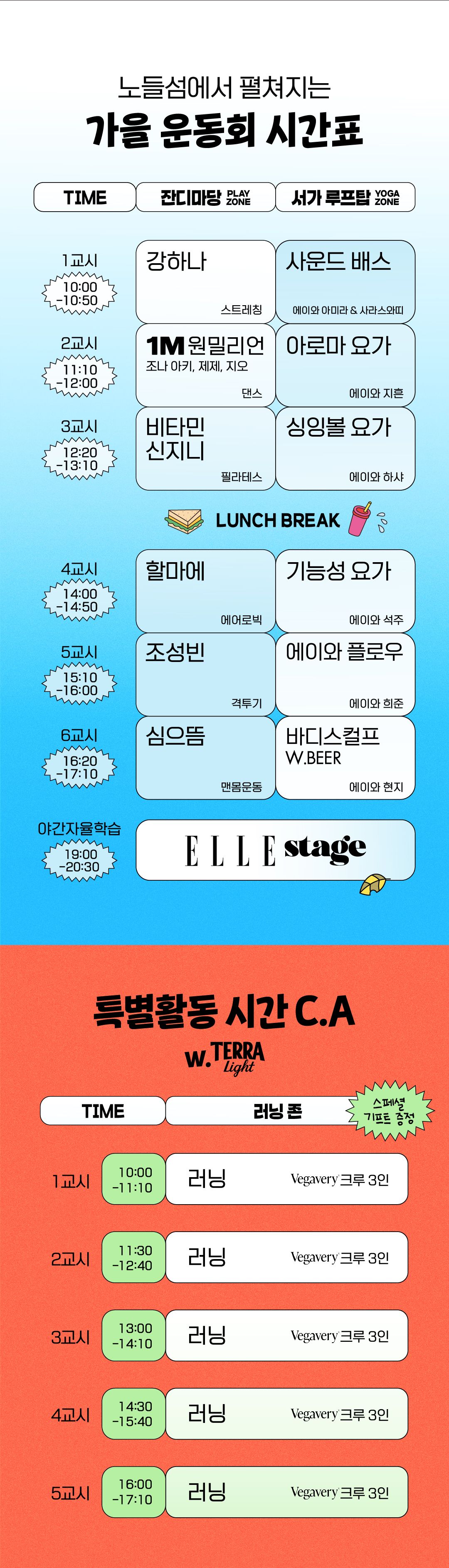 2017년 시작 이후 매해 업그레이드된 프로그램으로 도심 속 웰니스 라이프의 아이콘으로 자리매김한 시포레. 올해는 ‘가을 운동회’를 콘셉트로, 오전 9시부터 오후 6시까지 노들섬 잔디마당과 실외 공간 곳곳에서 다채로운 액티비티를 선보인다.