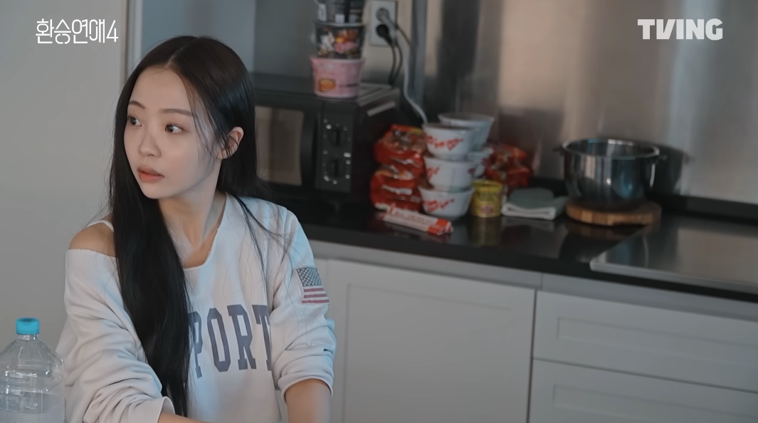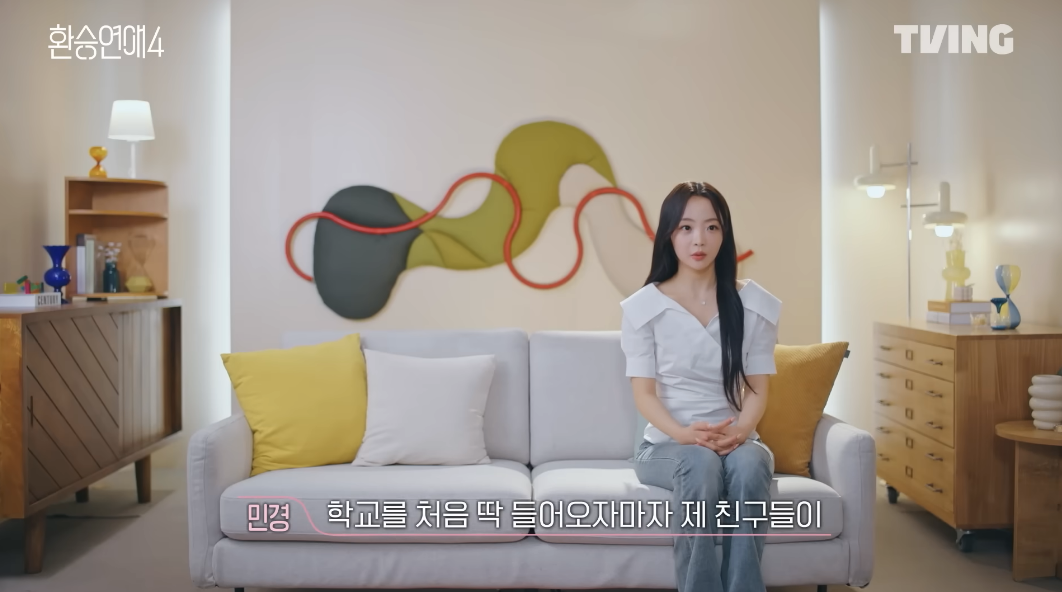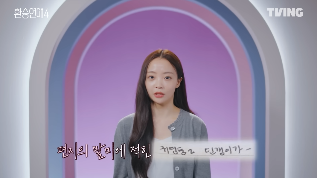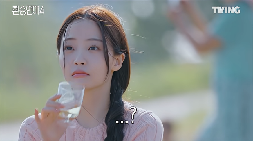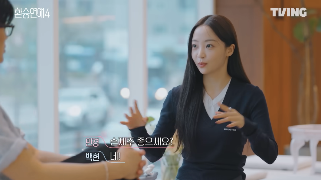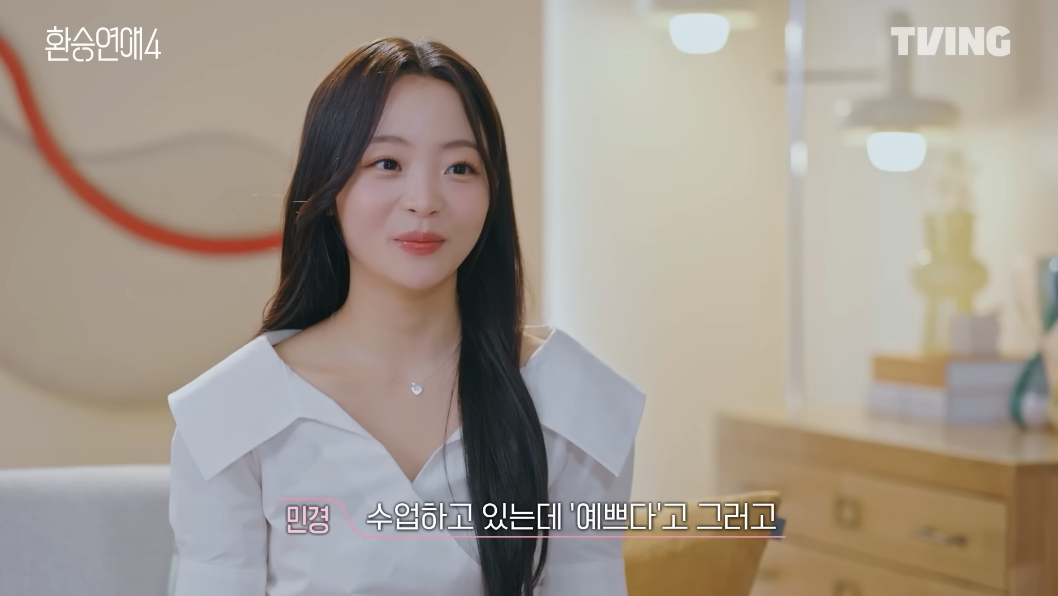 <환승연애>에서 출연자들의 가장 솔직한 모습을 엿볼 수 있는 인터뷰 장면. 곽민경은 화이트 이너에 슈슈통 그레이 가디건을 매치해 담백하면서도 여리한 분위기를 연출했다. 차분한 컬러 톤과 절제된 실루엣은 <환승연애> 특유의 감정 인터뷰 무드와도 잘 어우러지며, 전체적으로 ‘감정에 집중할 수 있는 미니멀한 스타일’이라는 인상을 남긴다.