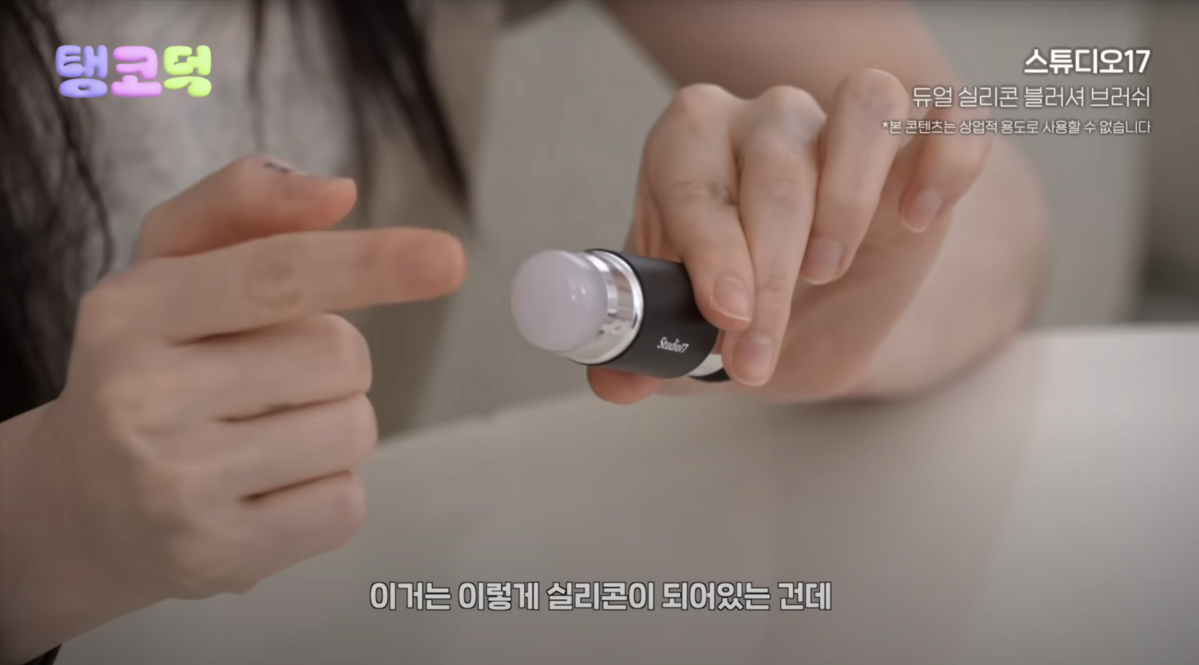 태연이 최근에 애정하는 뷰티 꿀템. 브러쉬와 실리콘 브러쉬가 결합되어 있어, 크림과 리퀴드 타입 블러셔를 바르기 좋고 특히 실리콘 팁은 세척하기 편리하다. 블러셔를 넓게 펴 바르기에 안성맞춤이며, 휴대용으로도 적합한 사이즈를 자랑한다.
