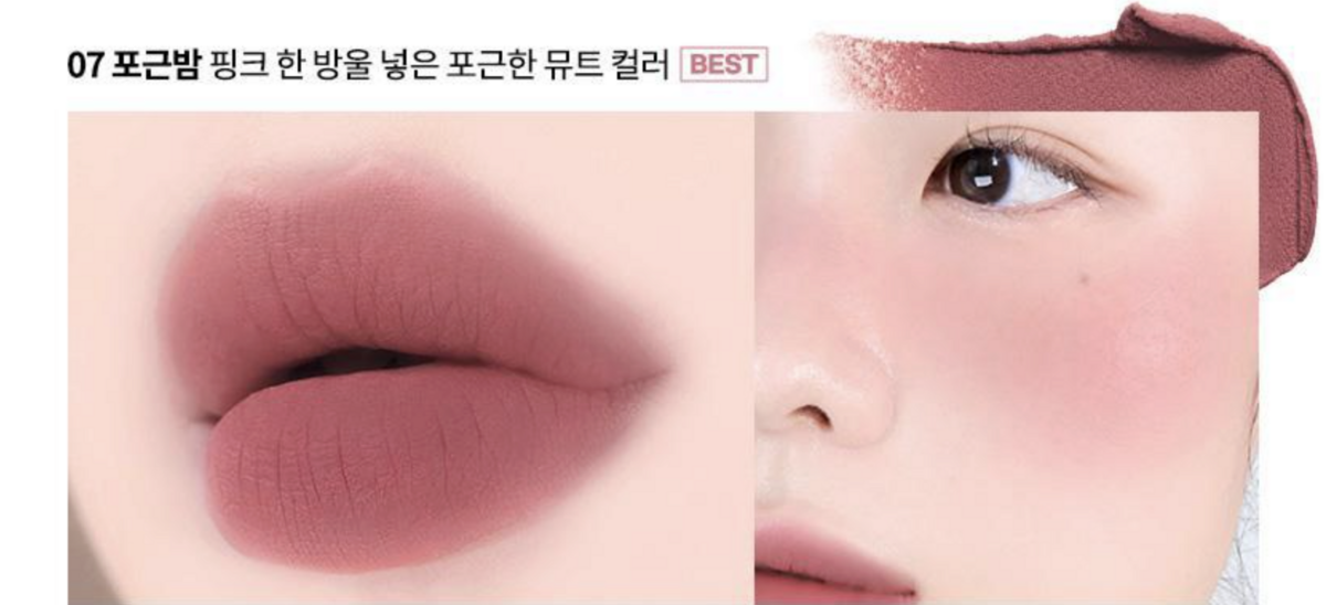 태연의 최애 매트 립 아이템으로, 태연이 '찐템 찐템 찐찐템'이라고 이야기했다. 부드러운 텍스처 덕분에 스무스하게 발리면서도 건조하지 않은 제형으로, 편안한 착용감을 제공한다. 블렌딩이 쉬워 립뿐만 아니라 블러셔로도 활용 가능한 만능템이다.
