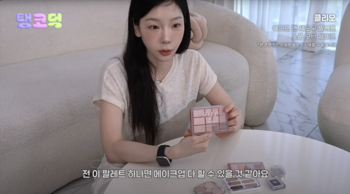 아이스크림 컨셉의 멀티 섀도우 팔레트. 태연이 퍼스널 컬러 진단 후 추천받아 선택한 제품으로, 이 하나만으로 블러셔, 섀도우, 음영, 애교살, 하이라이터까지 완벽하게 메이크업을 완성할 수 있다. 특히 애교살에 최적화된 음영과 하이라이터 컬러가 매력적이다.