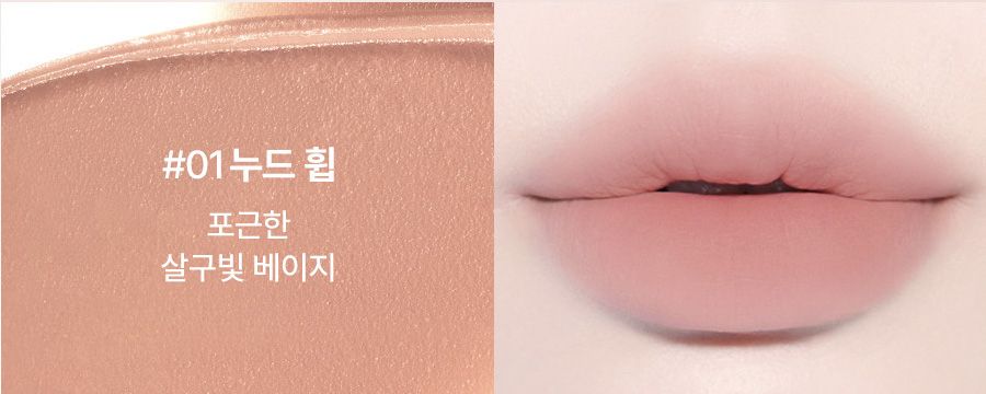 태연의 극찬을 받은 립 제품! '괜찮네'를 박복해서 이야기하기도 했다. 부드러운 벨벳 피니시 제형이 입술 주름을 자연스럽게 메워주며, 입술 외곽을 정리하거나 베이스 립으로 사용하기에도 좋은 컬러다. 태연이 추천한 누드 휩 컬러를 베이스로 사용하고, 그 위에 평소 좋아하는 컬러의 매트 립을 얹어주면 주름 없이 깔끔한 벨벳 립을 연출할 수 있다.