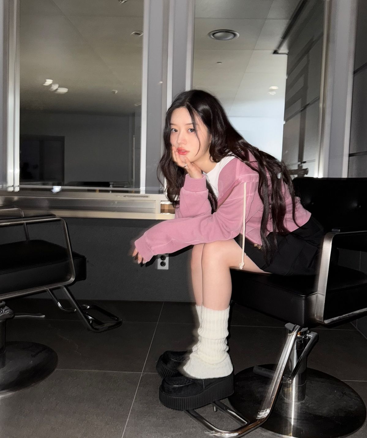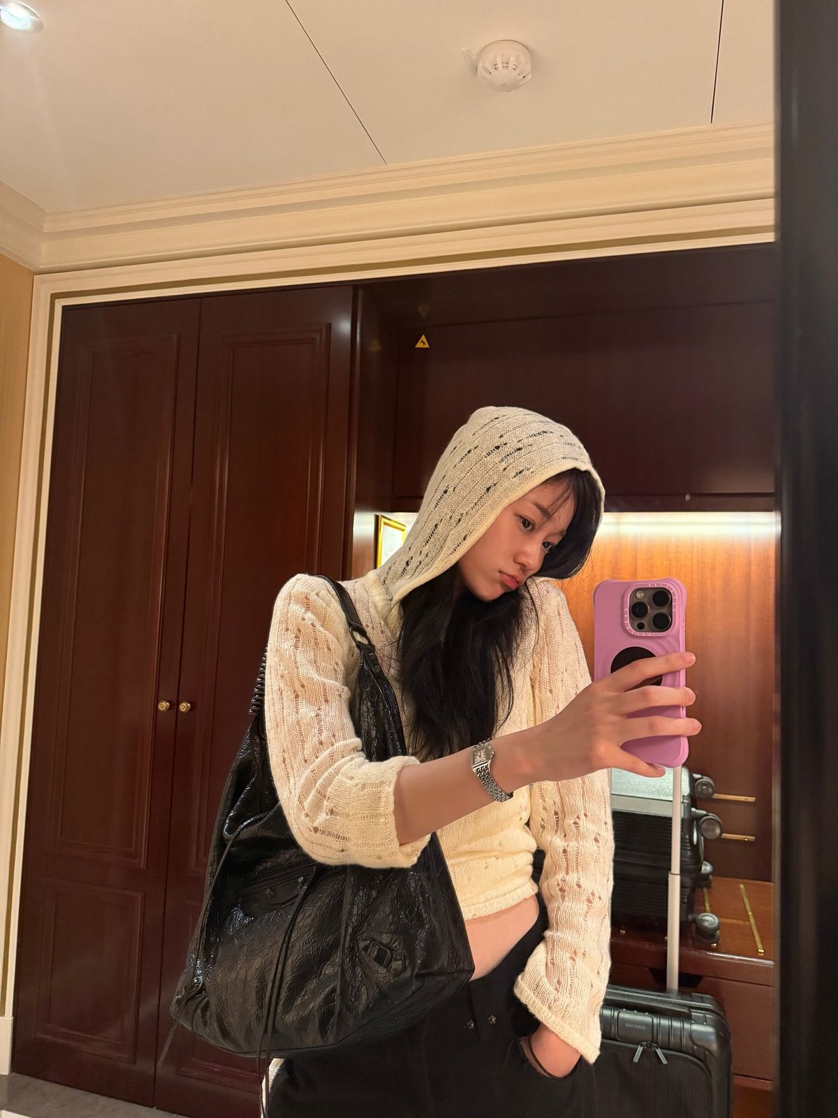 부드러운 니트 소재의 후드를 선택한 노윤서(출처: @rohyoonseo)
