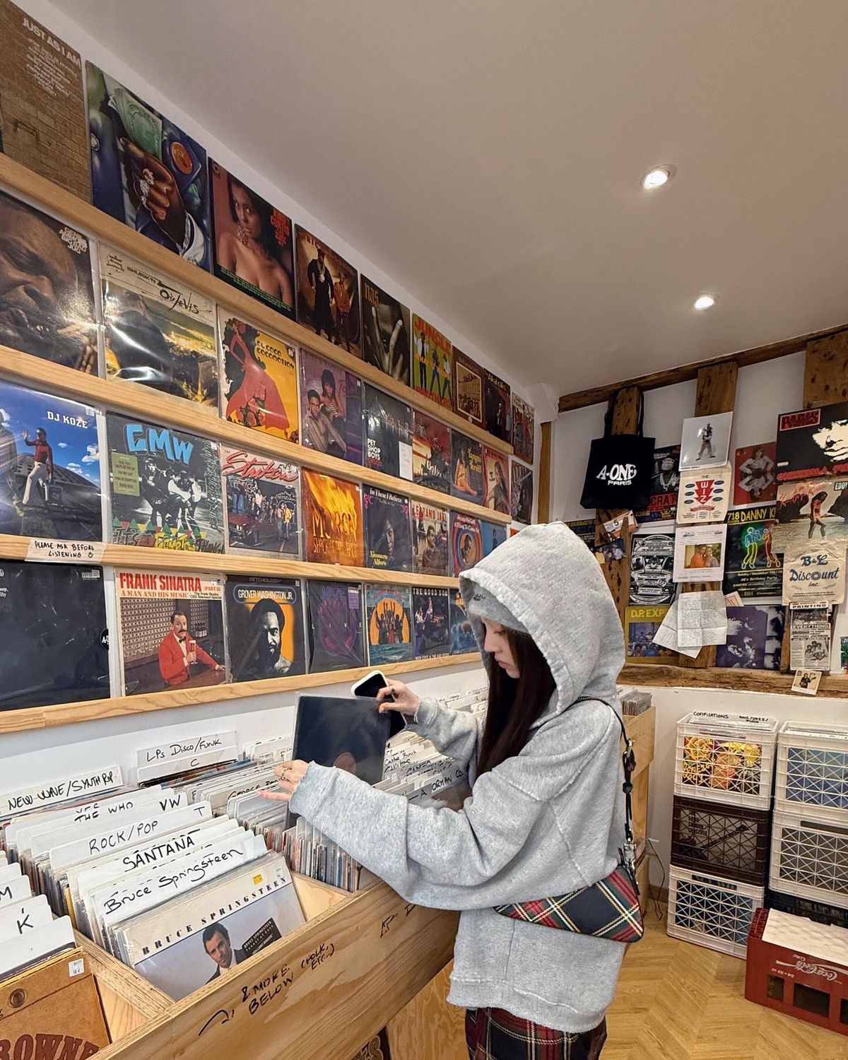 빈티지한 감성이 돋보이는 프린팅 스웨트셔츠를 선택한 슬기(출처: @hi_sseulgi)
