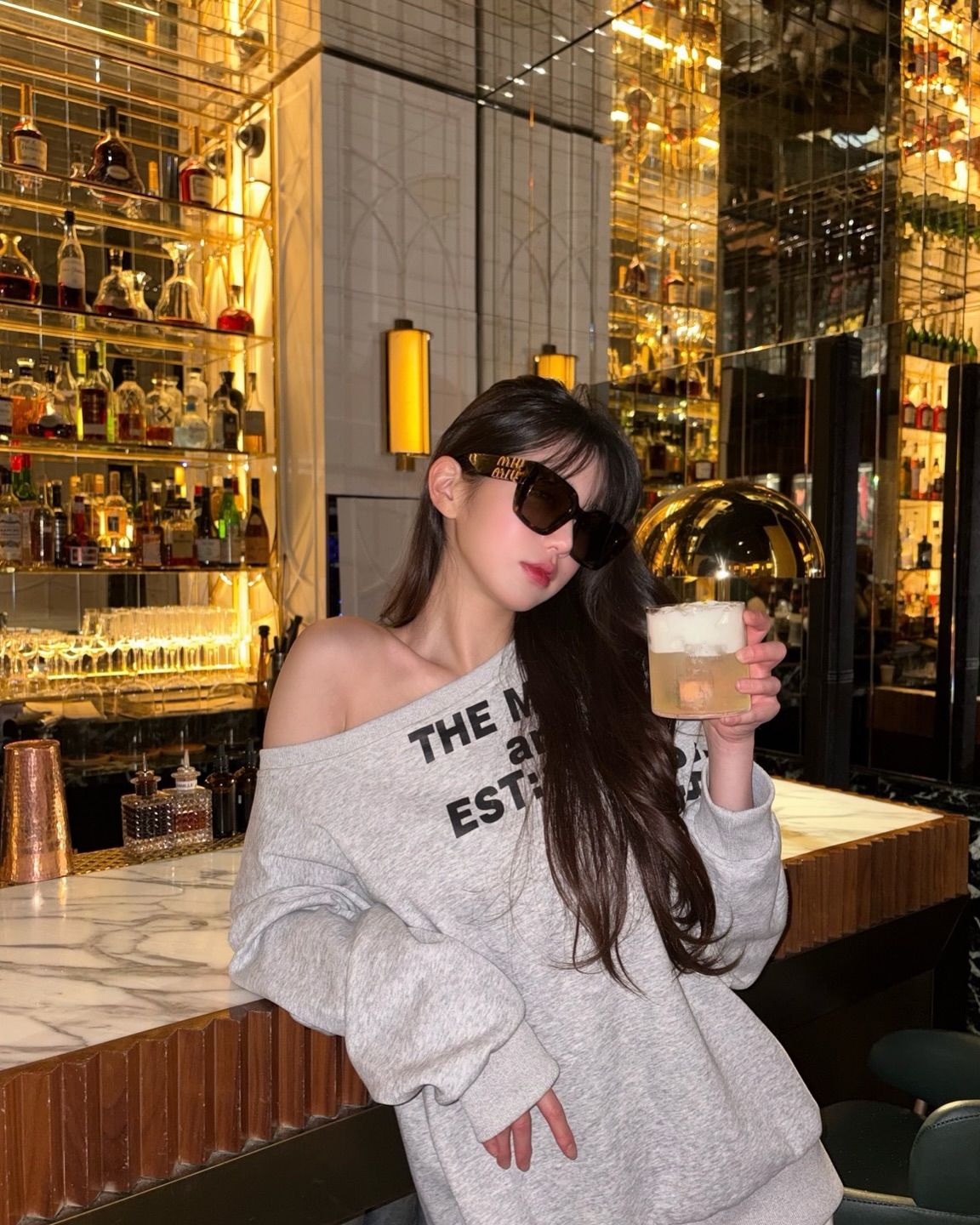 원 숄더 스웨트셔츠로 포인트를 준 장원영(출처: @for_everyoung10)