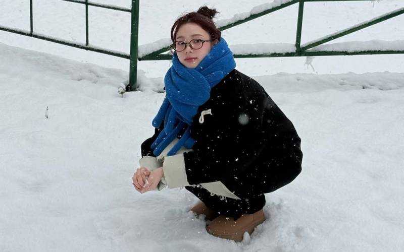 인플루언서 알레시야는 화이트 데님과 티셔츠에 그레이 니트를 매치한 스타일링으로 밝은 윈터 룩을 완성했다. 여기에 포인트를 주기 위해 폭이 넓고 도톰한 브라운 컬러 계열의 와이드 블록 머플러를 매치했다. 가을겨울 시즌에 쉽게 찾을 수 있는 베이지, 브라운, 모카 컬러의 와이드 블록 머플러를 통해 온기가 느껴지는 아이템을 선정, 볼륨감 있는 질감이 자연스러운 실루엣을 완성했다. 늦가을과 초겨울 머플러 스타일링이 답답해 보이지 않도록 매듭을 짓거나 두르기보다 어깨에 두른 레이어링으로 답답해보이지 않게 한 것도 참고할 만한 연출이다.