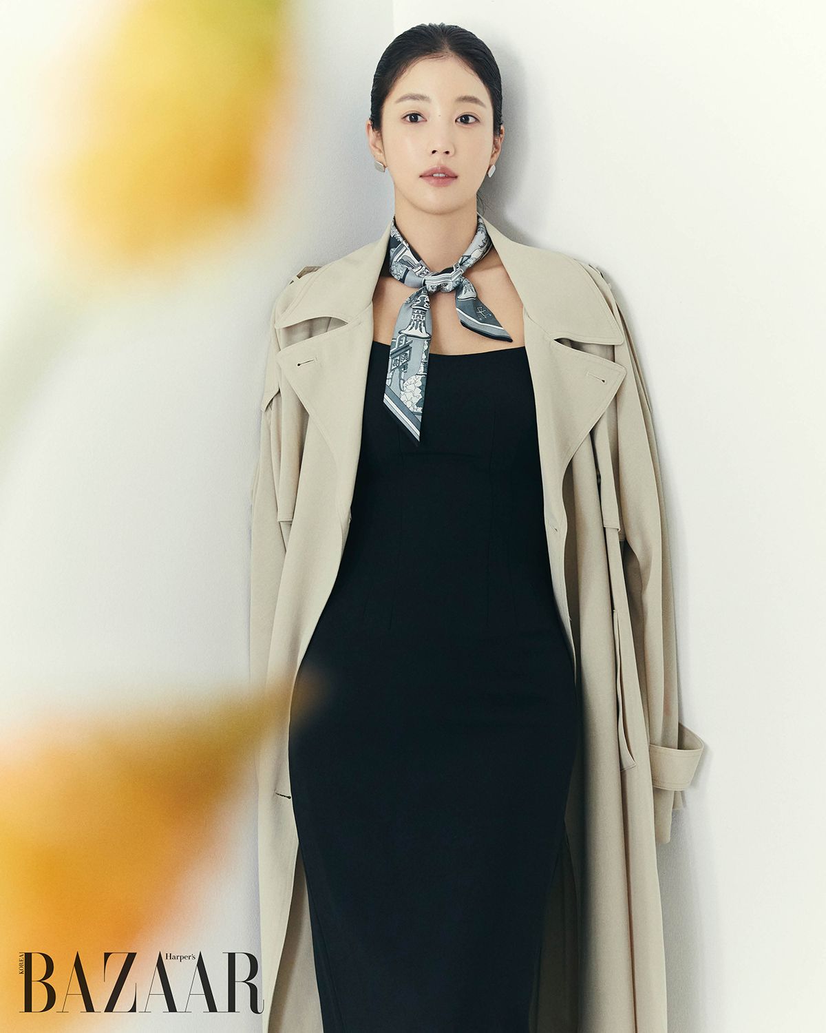 롱 드레스는 Dint. 귀고리는 Tom Wood. 트렌치코트는 스타일리스트 소장품.