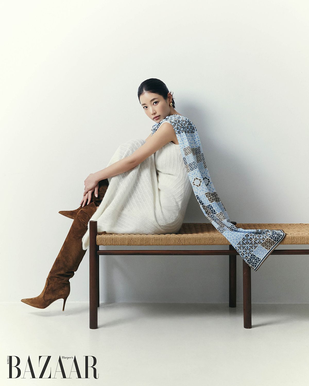 드레스는 Fabiana Filippi. 귀고리는 Greyeline. 니하이 부츠는 Gianvito Rossi. 이너 톱, 브리프, 이어커프는 스타일리스트 소장품.