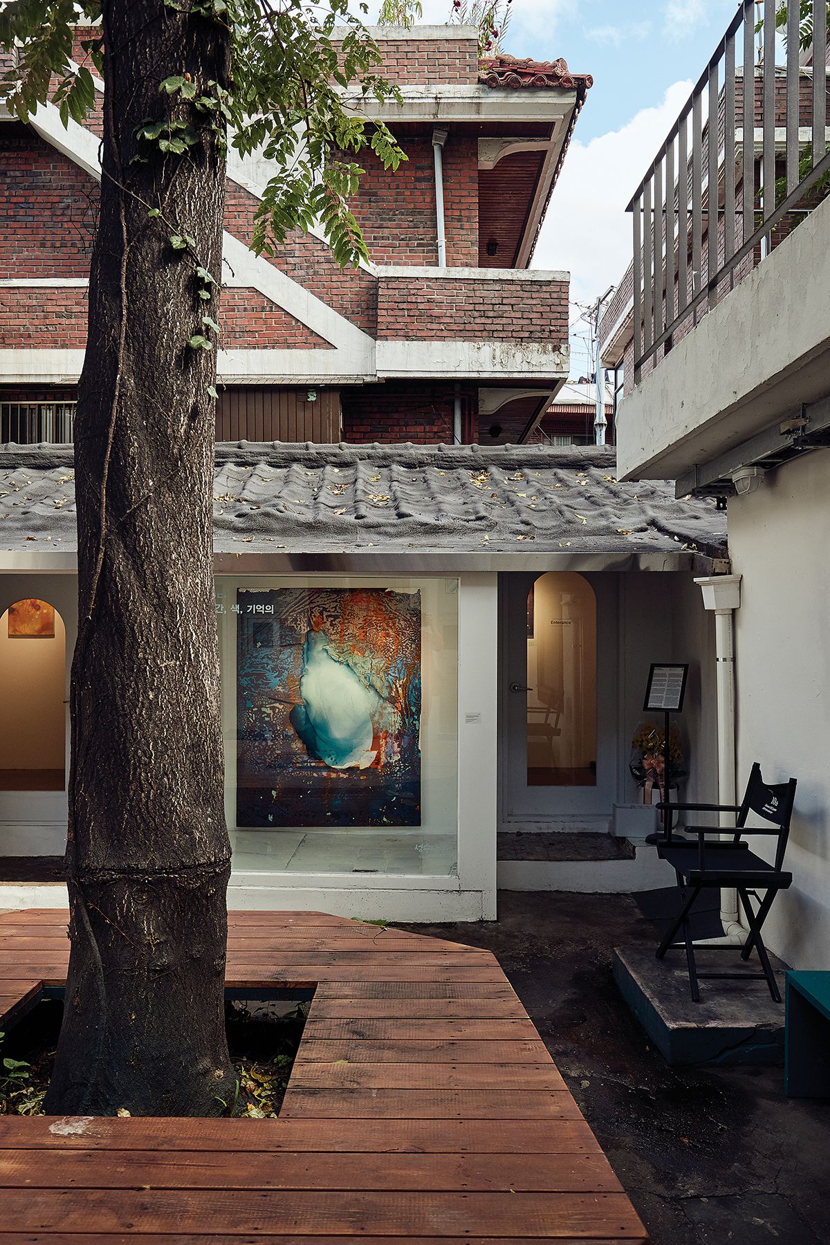 성수동에는 공장이 참 많았다. 지금도 현대식 건물 사이로 여전히 제 몫을 하는 공장이 남아 있고, 새로운 할 일을 찾은 터가 넘쳐난다. 성수나무는 1960년대부터 가죽 공장 기숙사로 쓰이던 공간을 리모델링한 아트 스페이스다. 붉은 벽돌로 지어진 오래된 다세대 주택 사이에서 주변 풍경과 별반 다르지 않은 모습으로 존재한다. 90살 먹은 가죽나무를 중심으로 ‘ㅁ’자 형태의 공간이 둘러싸고 있다. 한 칸은 뮤지션이 입주해 레지던시로 사용하고 있고 한 칸은 전시실, 불편하지 않을 정도로만 정비한 방에서 재미난 일이 벌어진다. 2층 역시 오래된 주택의 모습이 남아 있다. 아궁이로 밥을 짓던 부엌과 쪽방이 개별 전시 공간으로 기능하고 서까래와 창호지 문이 이곳만의 장식이 된다. 2층에서 내려다보면 가죽나무가 흩뿌린 잎사귀, 사람의 무릎으로 닳은 평상, 무심하게 놓인 낚시 의자가 평화롭기만 하다. 이 부드러운 풍경 뒤로 10년 후 재개발로 인한 철거가 예정되어 있다. 성수나무는 유예 기간 동안 지난 흔적에 새로운 흔적을 덧씌우며 새로운 그림을 그려나가려 한다. 그런 의지를 보여주듯 첫 시작을 필름 촬영과 디지털 스캐닝을 반복하며 아날로그와 디지털의 기록과 누락, 흔적을 시각화하는 작가 박인성의 개인전으로 열었다. 이어 11월 15일부터 전통적인 재료를 새로운 감각으로 선보이는 젊은 작가 3인의 합동 전시가 예정되어 있다. 서울시 성동구 성덕정3가길 3-14