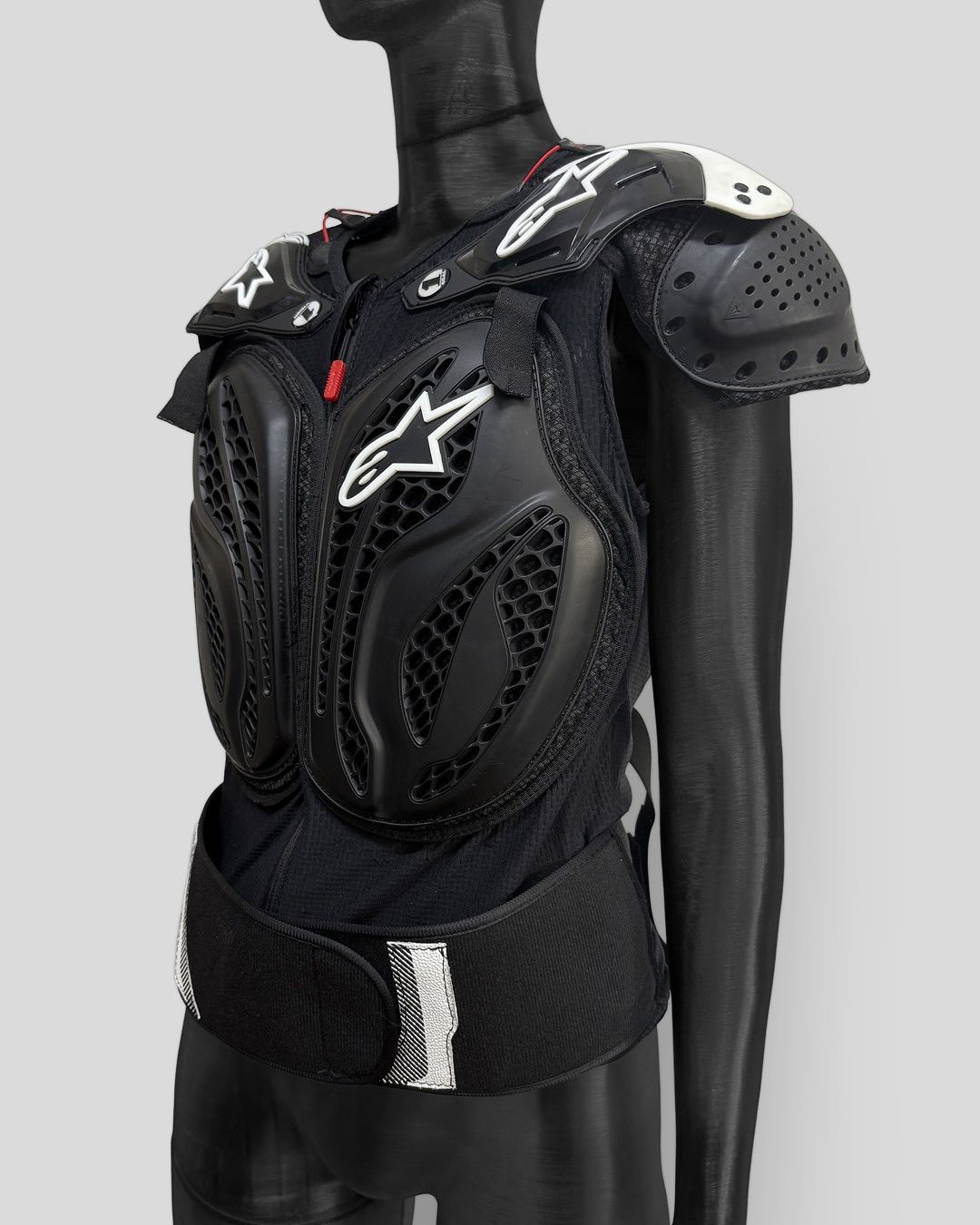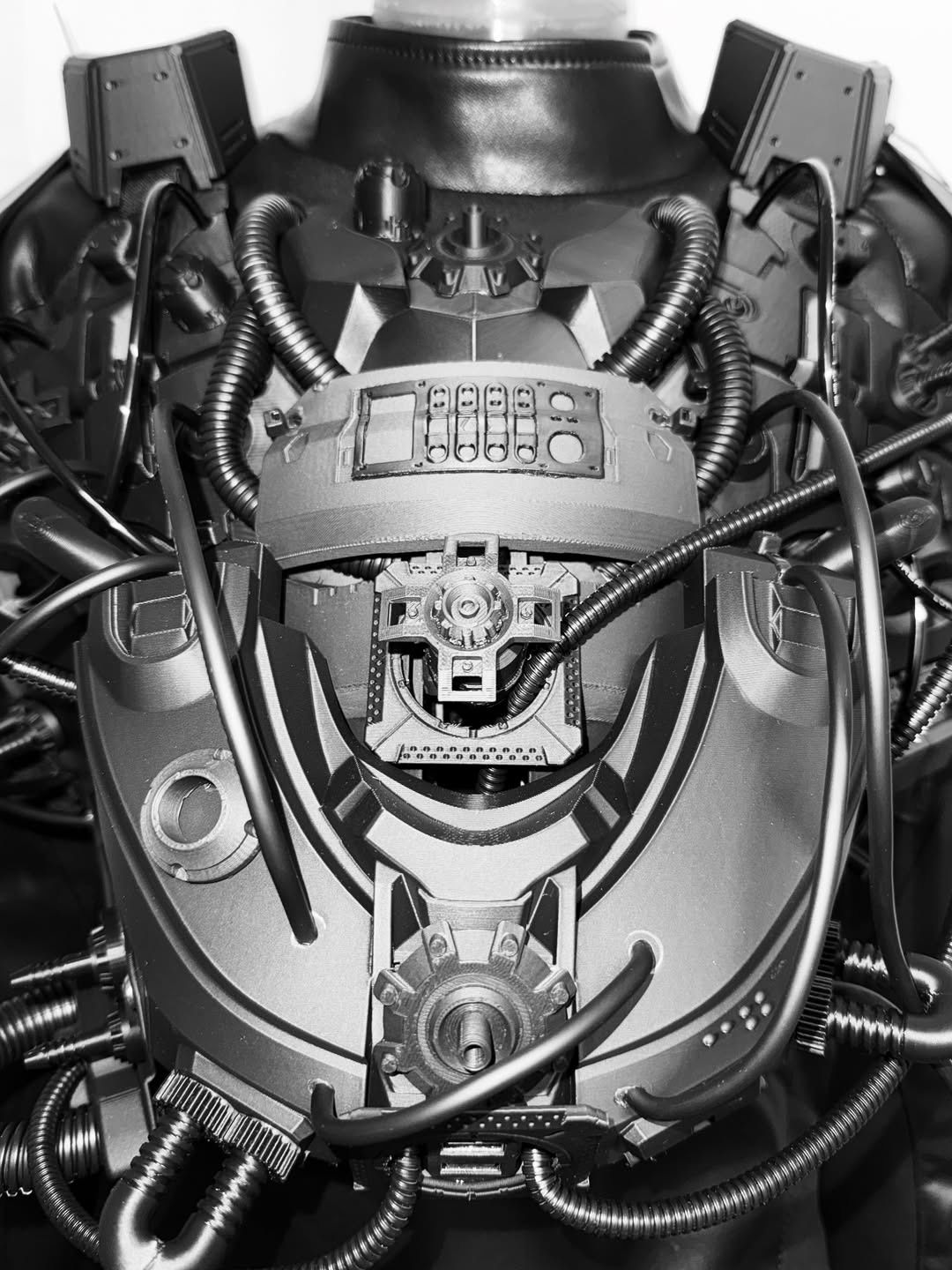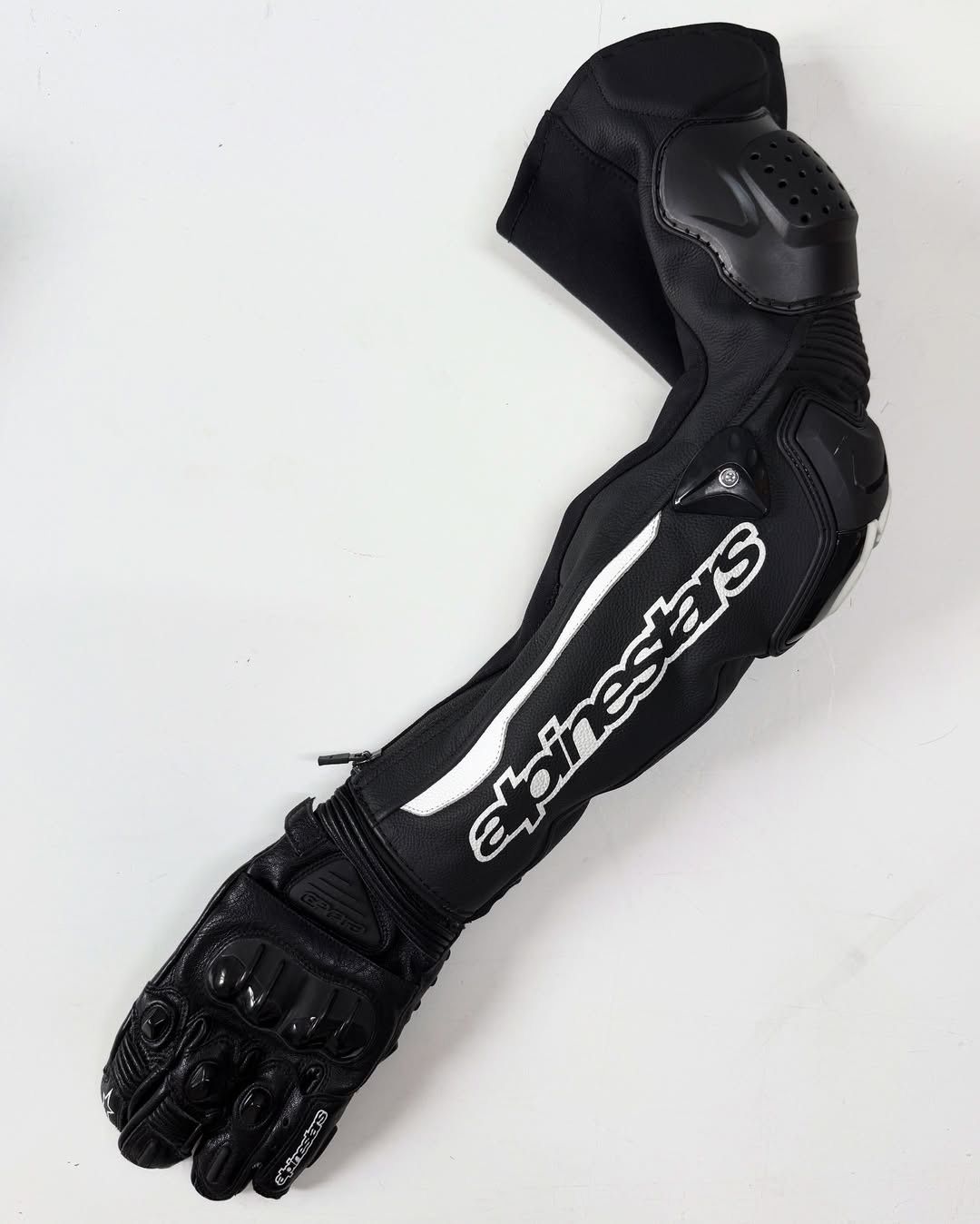 투어스와의 작업은 언뜻 보면 하드웍업식 해체의 톤을 조금 더 편안하게 낮춘 버전같아 보일 수 있다. 제작 의상인데도 과하게 꾸며졌다는 느낌이 없고, 평소 스트리트 스타일에 살짝 기계적 장치를 붙인 듯한 인상을 풍기기 때문. 다만 차분한 블랙 컬러에 숨겨진 킥은 들여다볼 수록 놀라게 되는 디테일에 있다. 같은 블랙 컬러 안에서도 질감과 형태를 달리한 수많은 패치워크를 발견해보자. 새로운 시대의 히어로물이 탄생한다면 바로 이런 모습이 아닐까 상상해볼 수 있다. 또 단순한 ‘멋짐’에 집중하는 것이 아닌 아티스트의 다양한 움직임을 고려한 치밀한 설계 역시 돋보이는 부분이다.