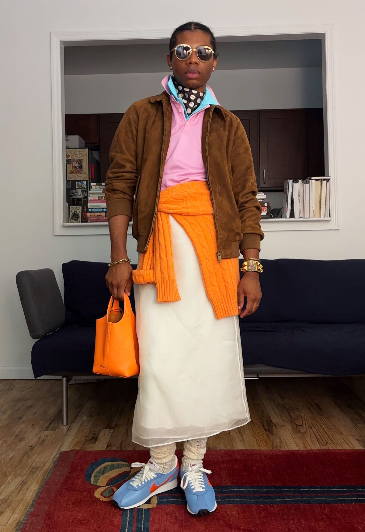 프레피 스타일의 핵심에는 ‘열망’이 있다. 일과 여가, 캐주얼과 격식 사이에 다리 역할이 돼주기도 하고. “프레피는 다양한 영역에서 그려지고 있어요.” 스타일리스트이자 서브스태커(substacker)인 자릴 존슨(Jalil Johnson)이 말한다. 그만의 해석은 젠더 코드를 뒤섞은 자유로운 퀴어 프레피. 예를 들면 폴로셔츠와 키튼 힐 슬링백을 매치한다든가, 시퀸 스커트 위에 체크 셔츠를 묶는 식이다.