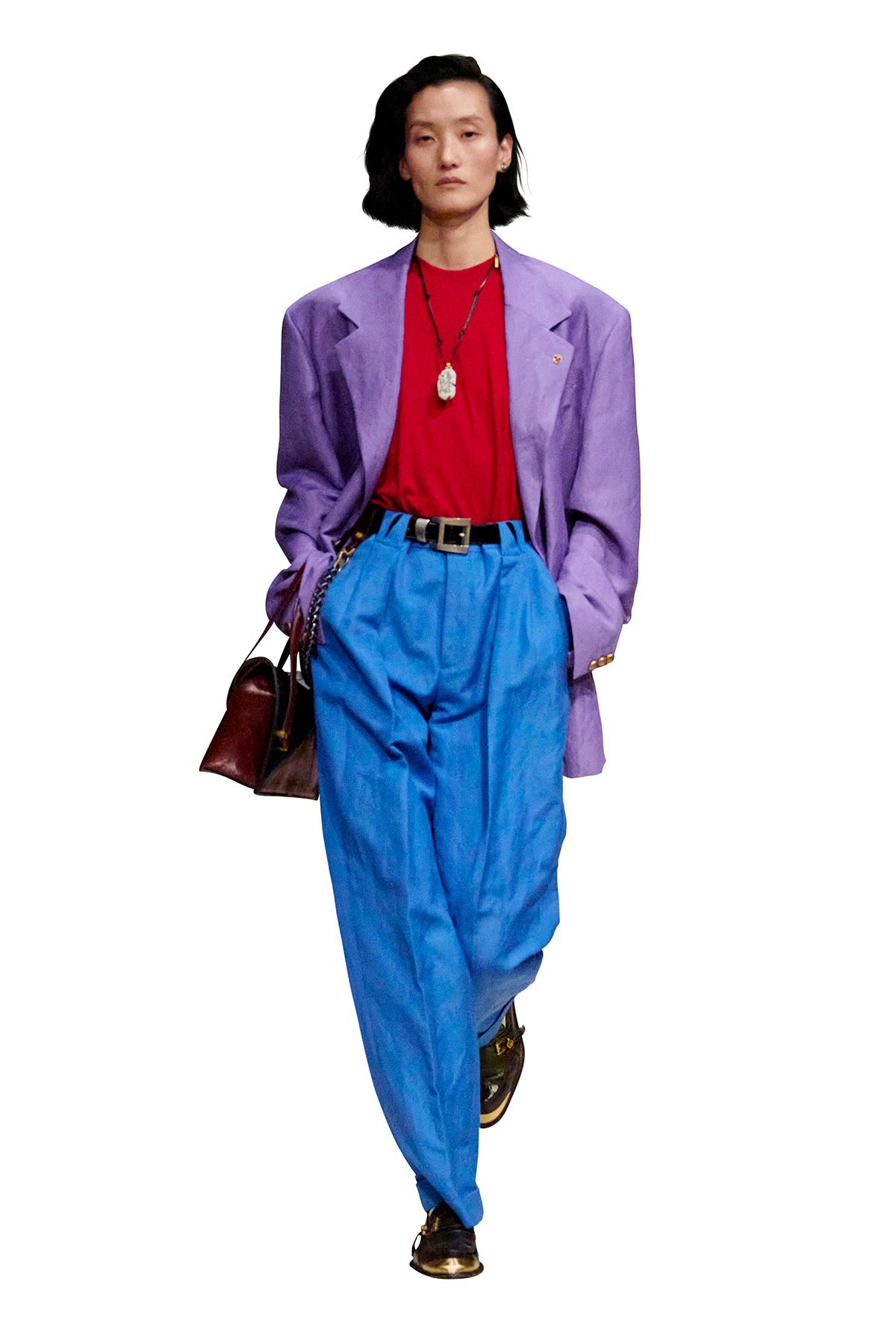 한편, 지난 9월 밀라노 패션위크에서는 베르사체의 다리오 비탈레가 이 대열에 합류했다. 그는 도나텔라의 매끄럽고 관능적인 시그너처 룩에서 과감히 벗어나 창립자 지아니 베르사체가 주도했던 1980~90년대의 화려함과 그 속에 깃든 퀴어 문화를 소환했다. 오버사이즈 블레이저에 티셔츠, 칼라를 세운 트랙 재킷, 바지 안에 넣은 줄무늬 스웨터 베스트 등을 강렬한 색감으로 내세운 것이다.