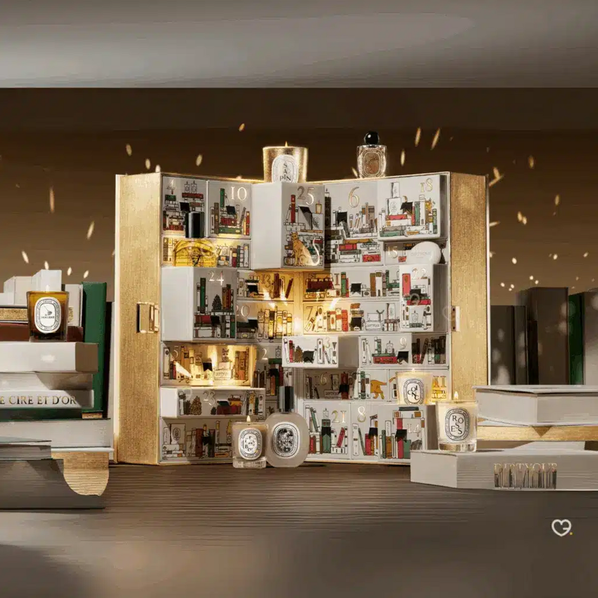 딥티크는 올해 파리 생제르맹의 빈티지 서점에서 영감을 받은 패키지에 ‘향기와 빛의 겨울 밤’이라는 이야기를 담아낸 어드벤트 캘린더를 출시했다. 파리에서 활동하는 일러스트레이터이자 서점 주인 빈센트 퓨엔테(Vincent Puente)를 비롯해, 작가 빅트 푸쉐(Victoire Fouche), 아티스트 이네스 멜리아(Inès Mélia) 세 명의 크리에이터가 참여해 딥티크만의 상상력과 감성이 구현된 아트피스로 완성했다.