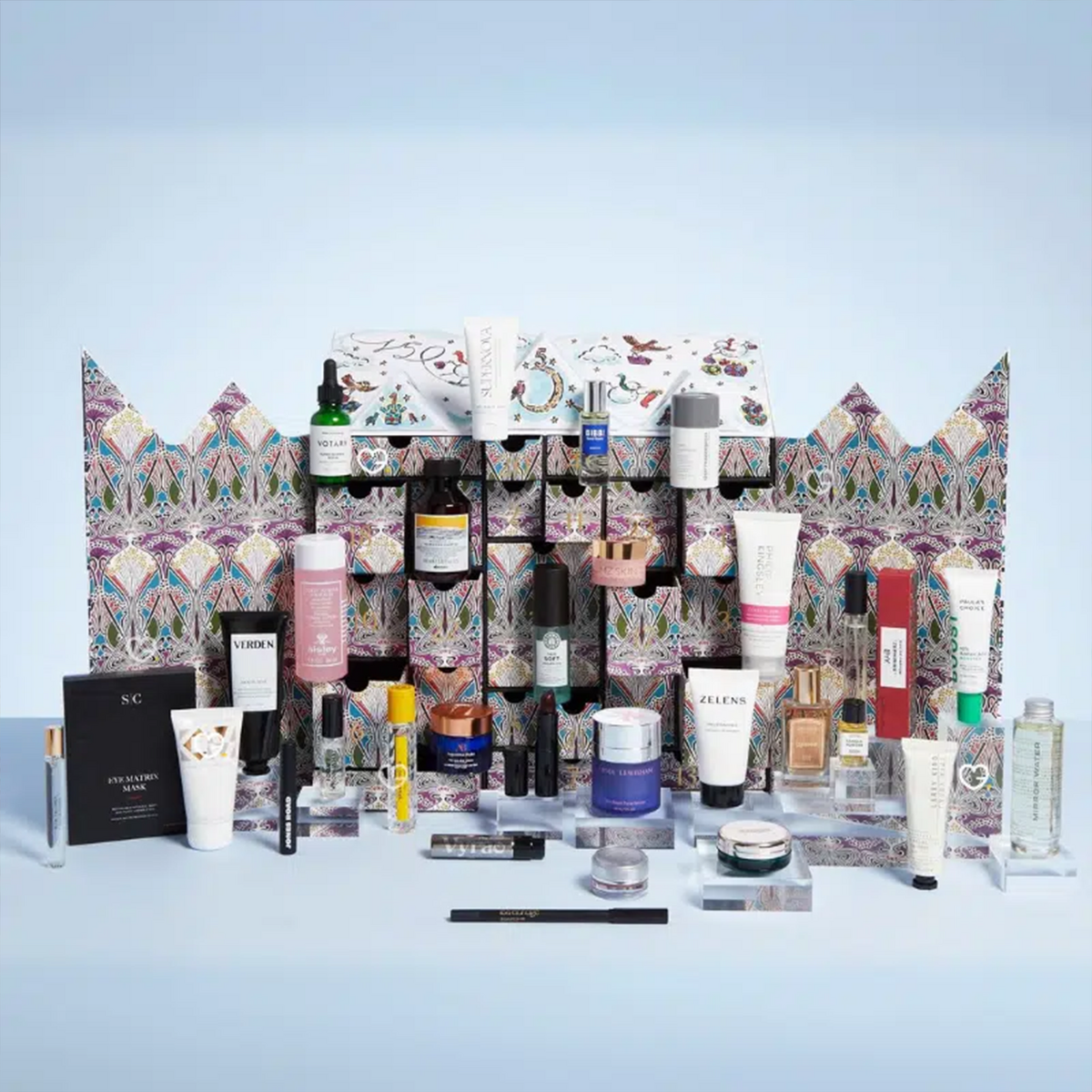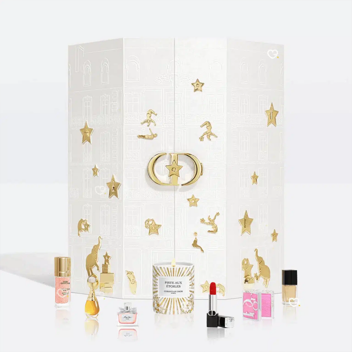 디올의 어드벤트 캘린더는 브랜드의 역사적 상징인 30 몽테뉴 부티크를 본떠 디자인한 패키지가 특징. 아티스트 피에트로 루포(Pietro Ruffo)가 그린 ‘Circus of Dreams(꿈의 서커스)’ 모티프가 더해져, 하나의 아트 오브제를 연상시키는 화려한 비주얼을 완성한다.