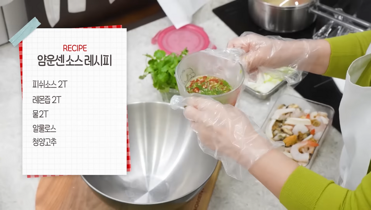 정말 나는 불 안 쓰고, 더욱 가벼운 한 끼 메뉴가 필요하다면, 두부면 얌운센이 가장 손 쉬운 선택일 수 있겠다. 우선 피쉬 소스 2티스푼, 물과 레몬즙 2티스푼, 설탕이나 알룰로스, 청양고추로 얌운센 소스를 후딱 완성해보자. 그리고 데친 해물 믹스에 소스를 부어준 다음, 방울토마토, 샐러리, 쪽파, 양파, 두부면을 더하고, 고수와 매운 고추를 넣어 팍팍 무쳐주면 끝. 17칼로리의 두부면이라 젓가락질 한번으로도 그 칼로리가 소모되니 부담도 없고, 한 끼 샐러드처럼 먹을 수 있으니 최화정이 추천하는 이유가 충분하다.