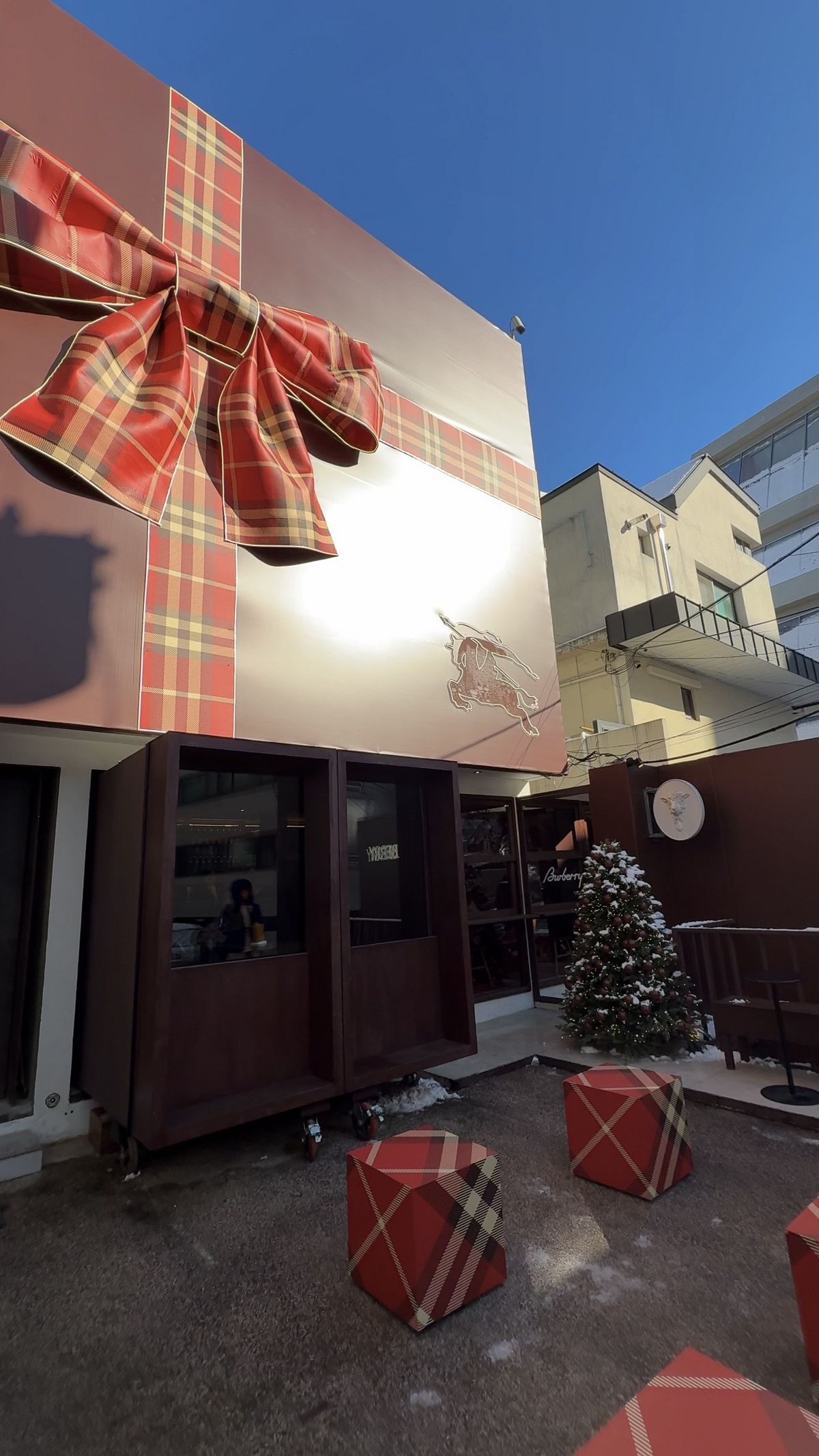 지난주 금요일 오후, 버버리 페스티브 나이트 바에 들렀다. 일주일을 마무리하며 스스로를 다독이듯 잠시 티타임을 갖기에 더할 나위 없이 좋은 공간이었다. 마침 첫눈이 내린 다음 날이라, 트리에 내려앉은 눈과 함께 레드 컬러의 페스티브 체크 리본으로 장식된 외관과 내부는 멀게만 느껴지던 연말 감각을 단번에 깨워주었다. 버버리 로고가 그려져 나오는 핫초코와 잉글리시 브렉퍼스트 티 라떼는 예상보다 훨씬 따뜻하고 달콤했고, 위스키 향이 은은하게 느껴지는 아이스크림 또한 인상적이었다. 머문 시간은 고작 30분 남짓. 그만큼 아쉬움이 남아, 이번 주말엔 조금 더 여유롭게 다시 한 번 들러볼 생각이다.