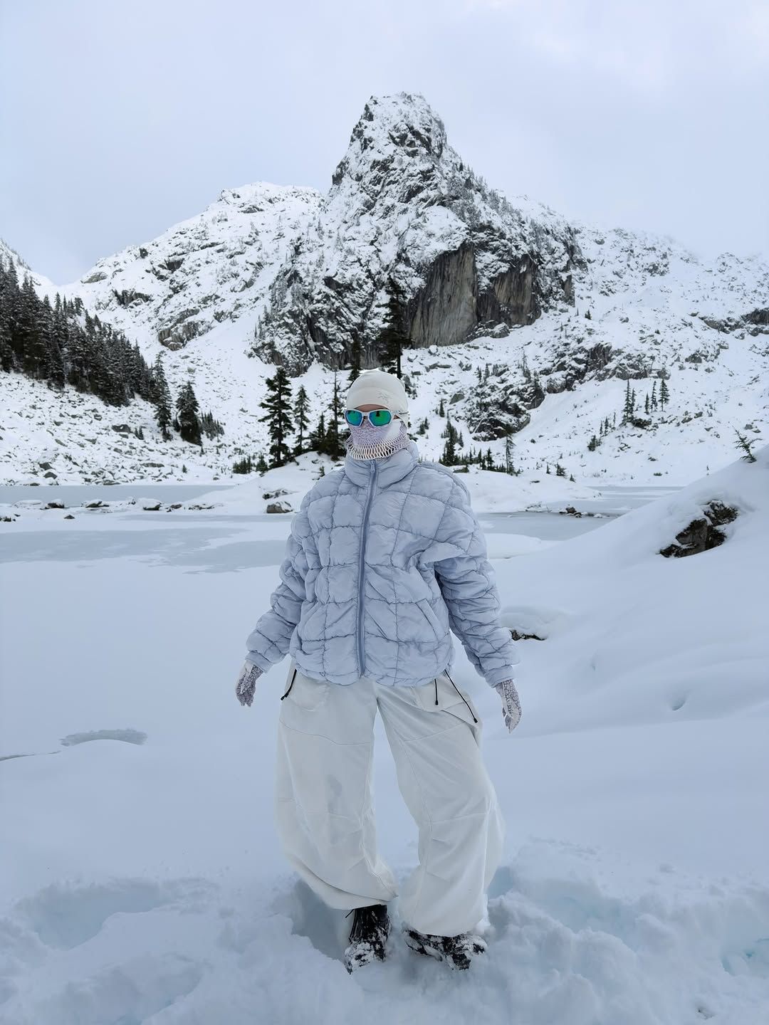 산과 바다를 가리지 않고 다양한 여행지의 다양한 계절을 즐기는 모습으로 사랑받는 인플루언서 @badkidhq 는 런던을 기반으로 활동 중이다. 하이킹과 캠핑에만 집중하지 않고 요가와 수영도 즐기는 그녀의 겨울 하이킹 룩은 계절과 장소를 넘나드는 자유분방함이 패션에도 반영되어 있음을 보여준다. 그래픽을 제외한 컬러풀한 프린트가 눈에 띄는 니트와 발라클라바 또는 비니를 매치하는가 하면, 폭넓은 와이드 카고 팬츠를 매치해 캐주얼 룩과 하이킹 룩의 적절한 믹스매치를 보여준다. 키워드는 다양한 앵글과 그보다 다양한 아름다운 자연. 그리고 오랜 아웃도어 라이프로 단련된 핏한 몸매와 건강하게 그을린 피부다.